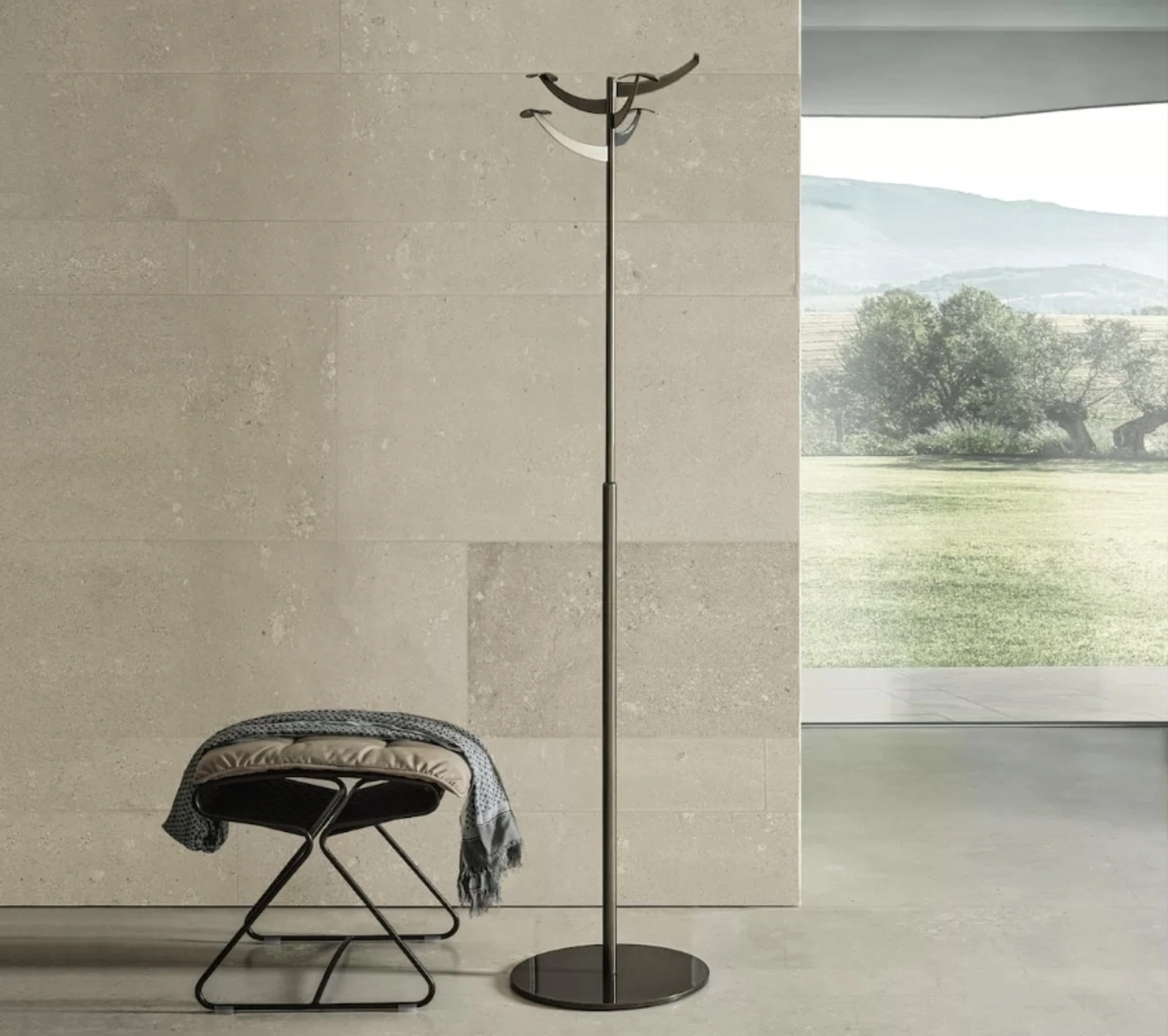 Quali sono i materiali e le dimensioni dell'Appendiabiti Battista?L'Appendiabiti Battista è un complemento d'arredo di design firmato Bontempi. Per informazioni dettagliate su materiali, finiture disponibili e dimensioni esatte, ti invitiamo a contattare Visone Casa S.r.l. o a visitare il nostro showroom.
