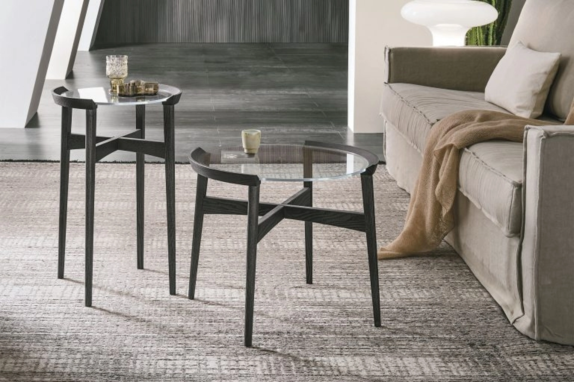 Altamente versatili e multifunzionali, i Complementi moderni in vetro rispondono a funzioni diversificate: completano le qualità pratiche e l'estetica del locale. In negozio potrai visionare in prima persona l'eccellenza dei modelli di tavolini moderni in vetro della firma, proprio come questa proposta in foto. Complementi e tavolini completano l'arredo di casa, occupando lo spazio in modo utile e rendendolo accogliente e di grande valore estetico. Le composizioni di charme del marchio Tomasella arredano l'habitat con colore e stile, ricreando peculiari atmosfere arredative.