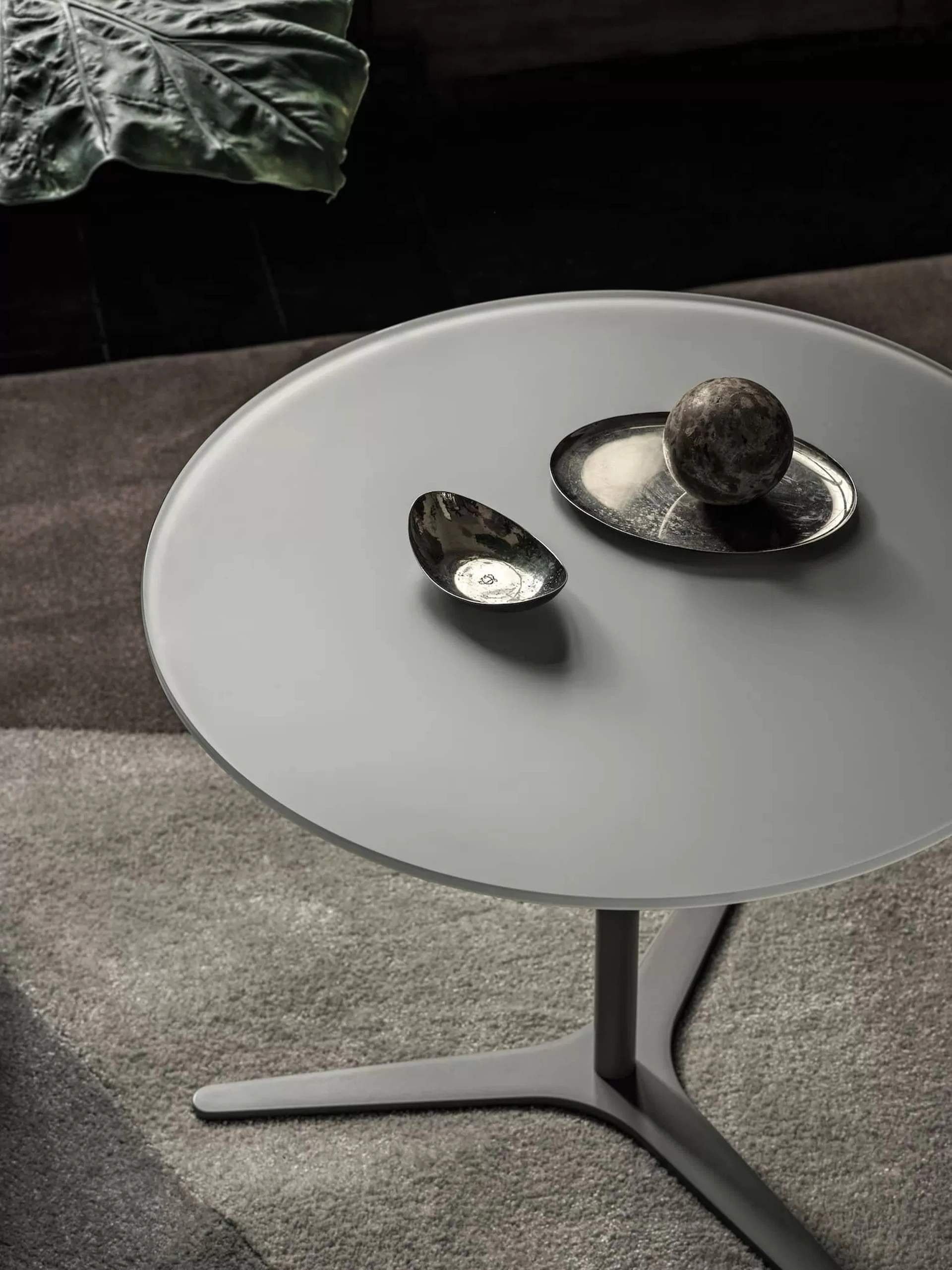 Il tavolino Elica, una creazione distintiva di Bontempi, si distingue per la sua robusta struttura in metallo laccato, che ne garantisce stabilità e durabilità. Il design è impreziosito da un piano raffinato, offerto in varianti di cristallo lucido o nella versione antigraffio opaco velluto, assicurando versatilità estetica e resistenza all'uso. Progettato per adattarsi a diverse esigenze d'arredo, è disponibile in configurazioni di dimensioni come Ø 50 x H 40 cm (tavolino basso), Ø 50 x H 50 cm (tavolino alto). Scegliere questo prodotto significa investire in una soluzione d'arredo che coniuga durabilità intrinseca e un'estetica senza tempo, per un ambiente che evolve con te.