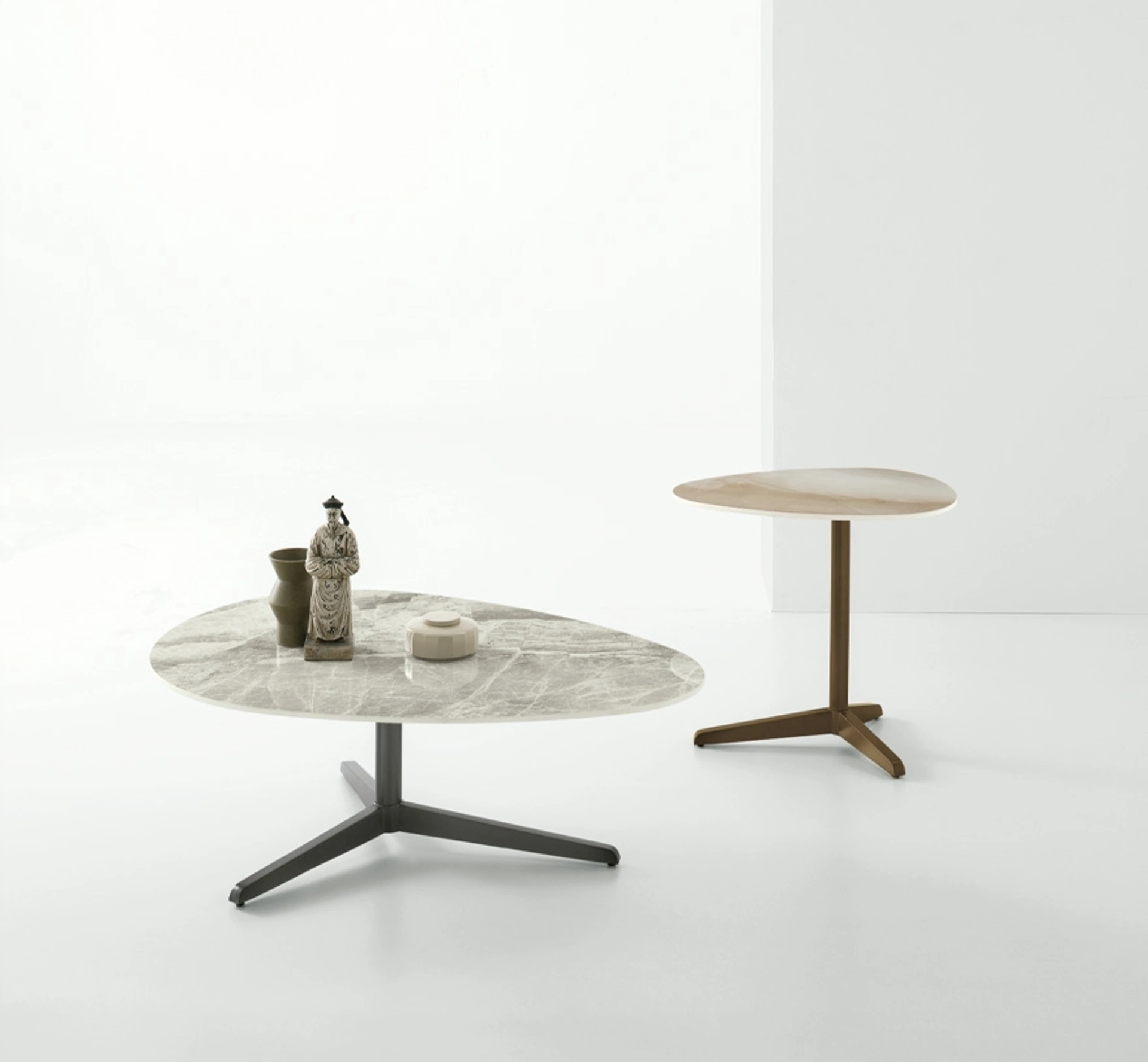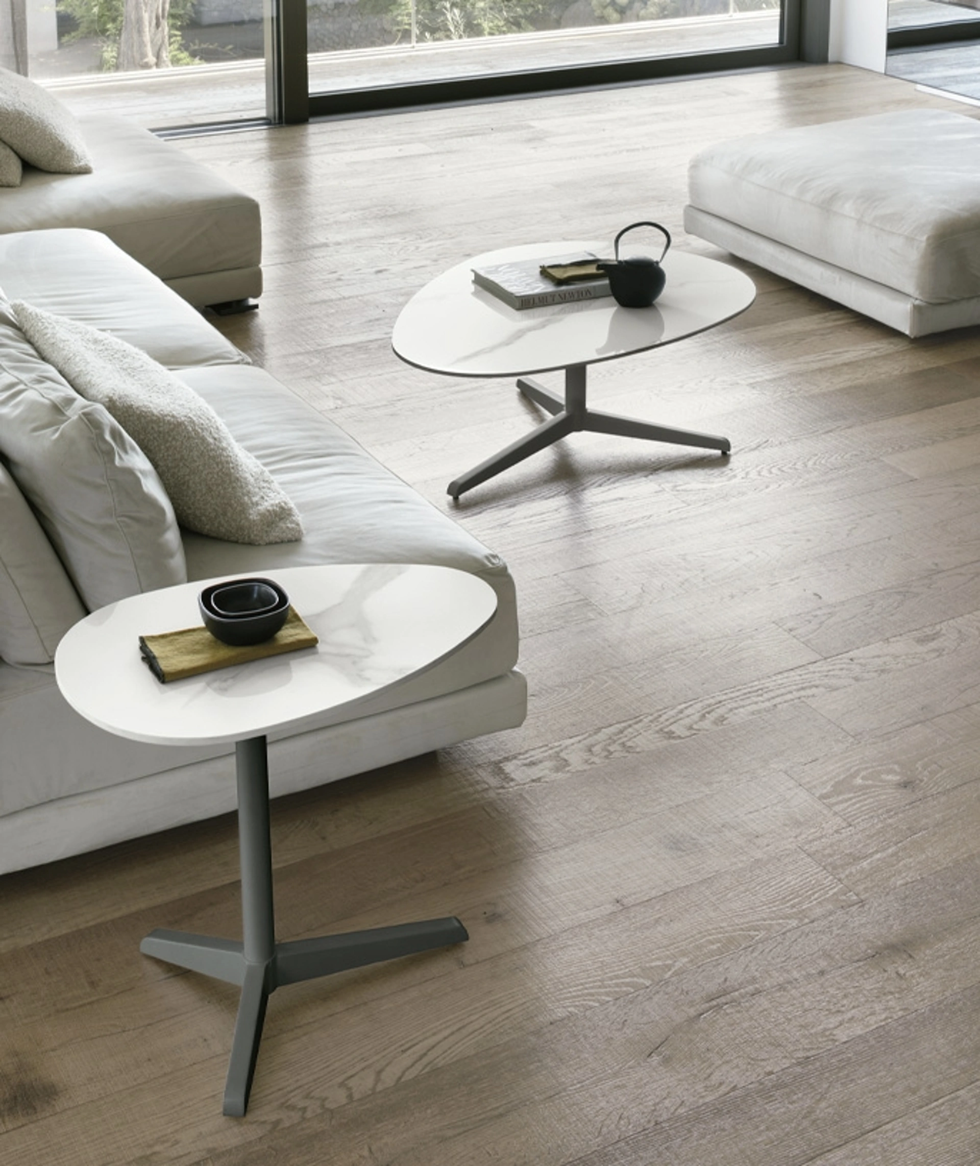 Il tavolino Elica di Target Point incarna un'interpretazione scultorea del design ispirata alla fluidità aerodinamica delle pale di un'elica, conferendo una presenza estetica notevole. Questo elemento d'arredo è proposto in due varianti dimensionali, con diametri di 105 cm e 60 cm, offrendo flessibilità di integrazione negli spazi living, sia come fulcro centrale che come complemento laterale funzionale. La sua architettura si basa su una robusta struttura in metallo con finitura verniciata, garantendo stabilità strutturale e durabilità nel tempo. Il piano d'appoggio è realizzato in grès porcellanato, un materiale composito ad alta densità rinomato per la sua resistenza meccanica, l'impermeabilità e la facilità di manutenzione, ideale per un utilizzo quotidiano. Per una comprensione approfondita delle specifiche tecniche e delle opzioni di personalizzazione materica, si invita a consultare la documentazione tecnica del prodotto.