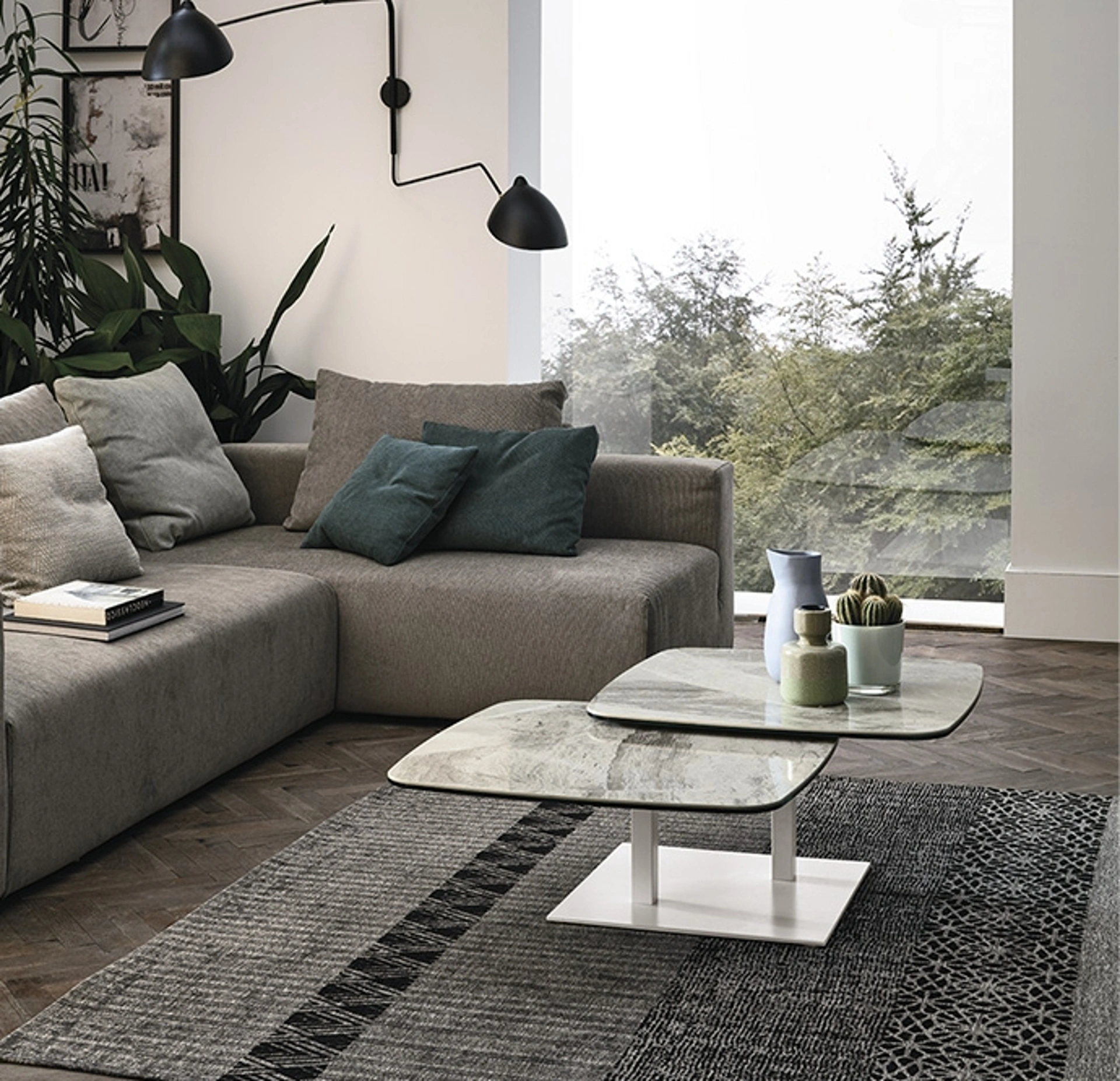 Le composizioni di grande valore estetico del marchio Target Point rendono belli l'habitat con colore e gusto, ricreando particolari atmosfere arredative. Particolarmente versatili e plurifunzionali, i Complementi moderni in gres assolvono a funzioni disparate: completano le doti di praticità e l'estetica del locale. Complementi e tavolini personalizzano l'arredo di casa, riempiendo lo spazio in modo utile e rendendolo accogliente e bello da vedere. Nel nostro showroom potrai vedere dal vivo l'eccellenza dei modelli di tavolini moderni in gres della firma, proprio come questa soluzione in foto.