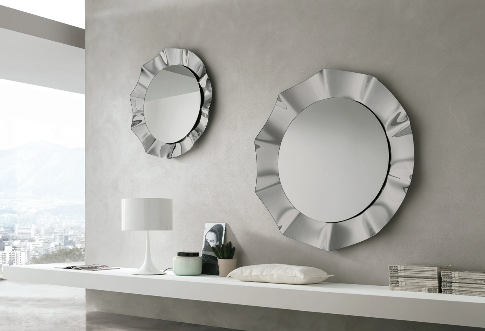La specchiera Osiride, firmata Target Point, si distingue come elemento d'arredo di raffinata ingegneria estetica, ideale per valorizzare ingressi o aree living. La sua peculiarità risiede nel design circolare con un distintivo bordo ondulato, interamente realizzato in Vetro curvato di alta qualità, conferendo una profondità visiva e un'eleganza intrinseca. Disponibile in varianti da 90, 120 cm di diametro, offre flessibilità per diverse configurazioni spaziali. Questo elemento è studiato per integrarsi con armonia, garantendo un impatto visivo notevole grazie alla sua manifattura e al concept di design.