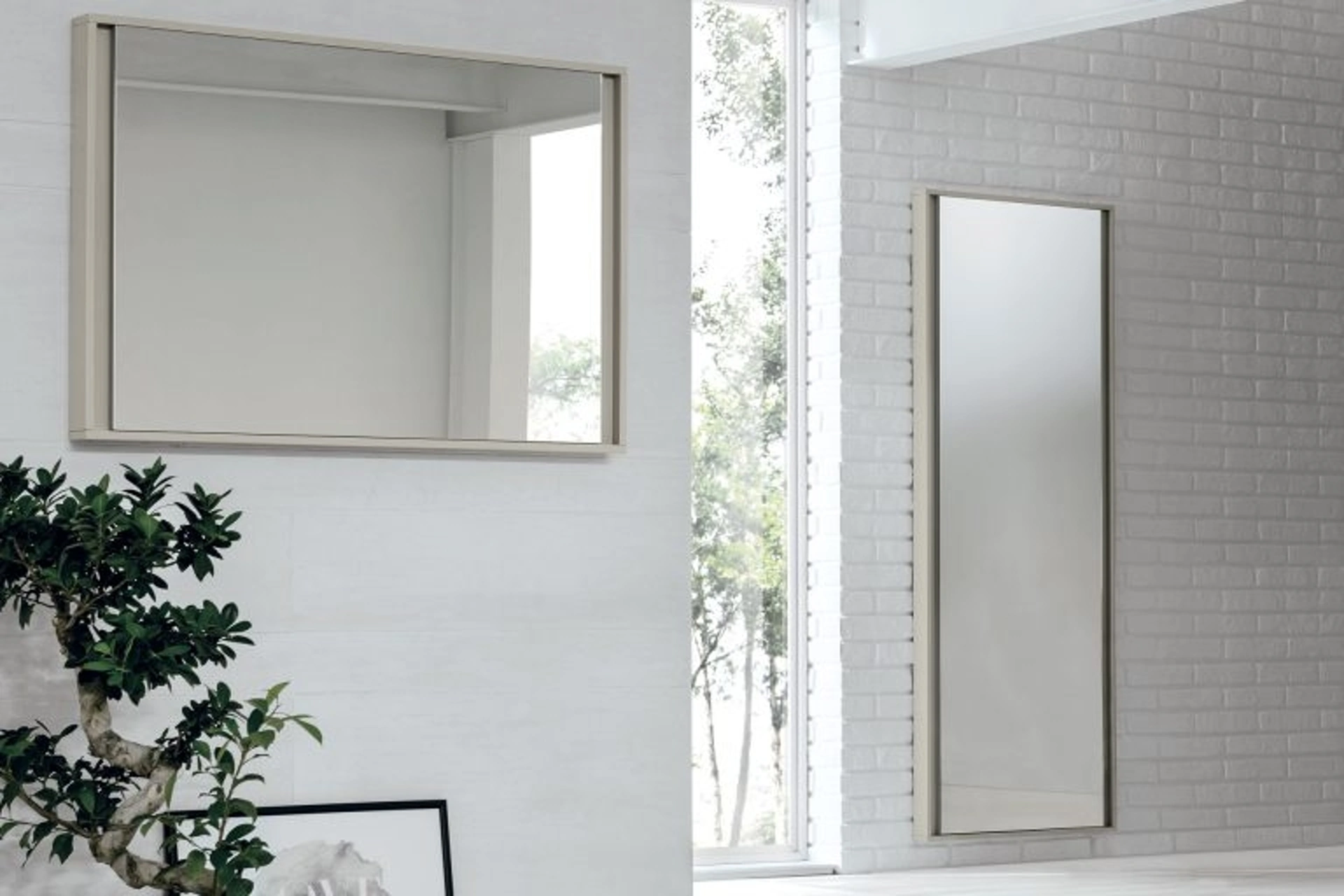 | Materiali/Finiture: | Struttura in legno, laccato poro aperto madreperla 224, specchio argentato 381 |