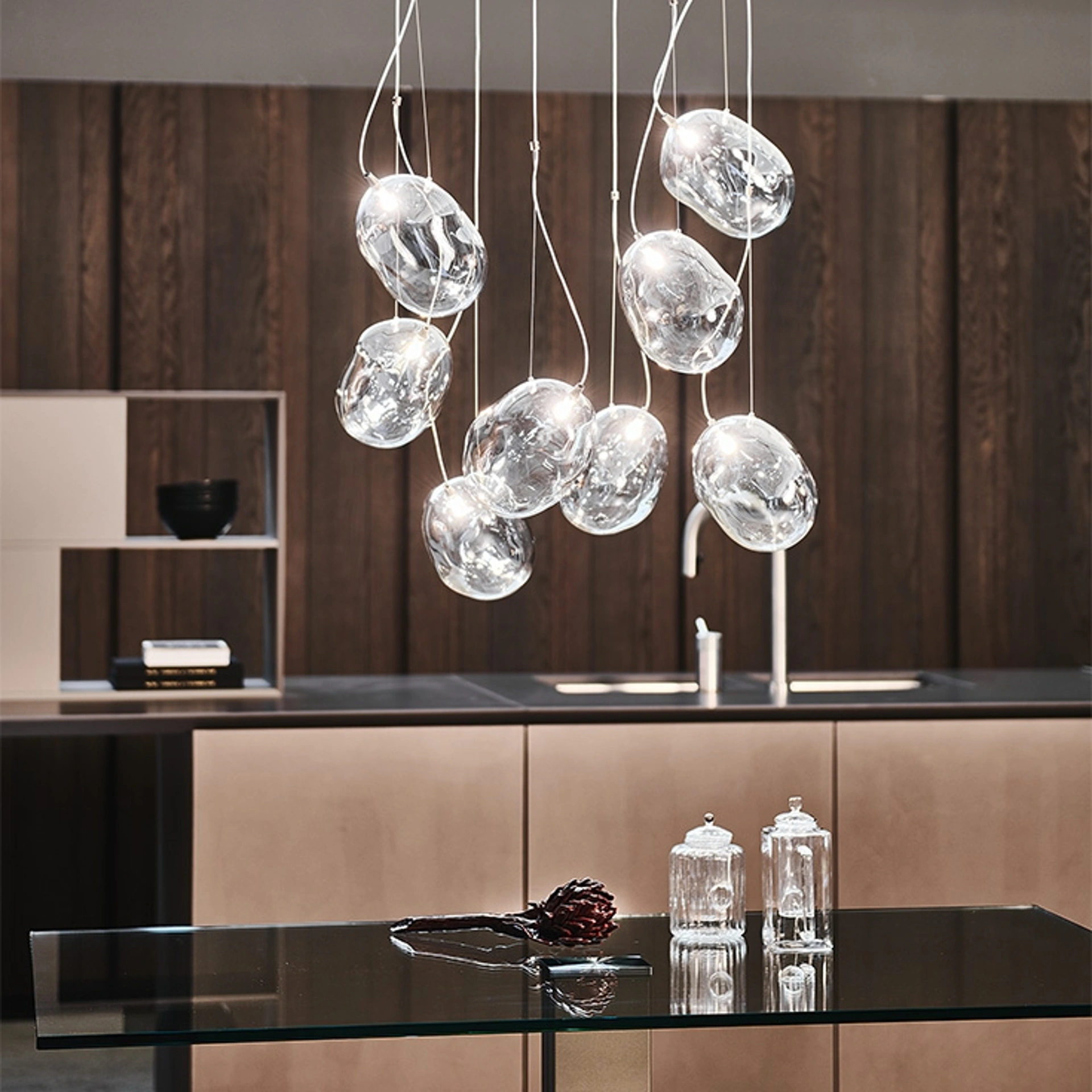 | Materiale: | Cristallo Iride, Cristallo Fumè, Acciaio cromo nero |