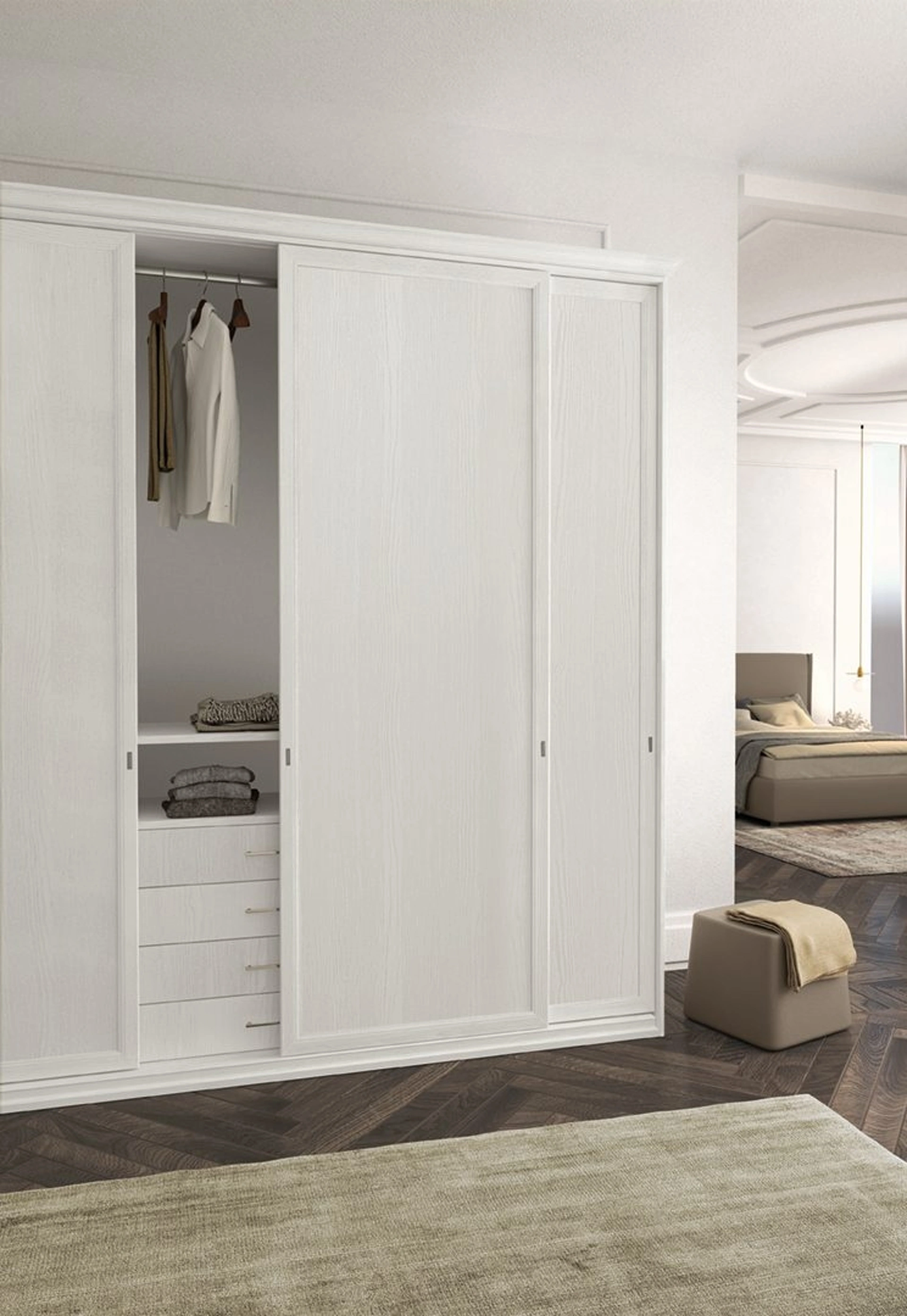 Visone Casa S.r.l. offre servizi di progettazione 3D per l'armadio Arcadia AM007 a Caserta?Certamente, Visone Casa S.r.l. offre servizi di progettazione 3D per aiutarti a visualizzare il tuo armadio Arcadia AM007. Effettuano rilievi delle misure in loco, anche nella zona di Caserta, per un progetto preciso.