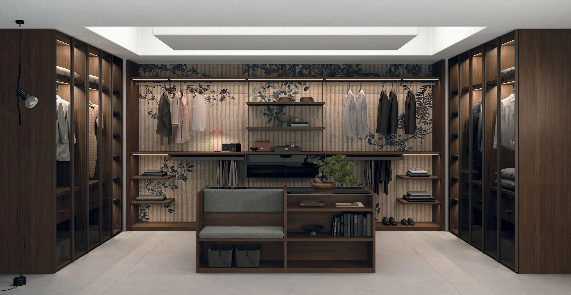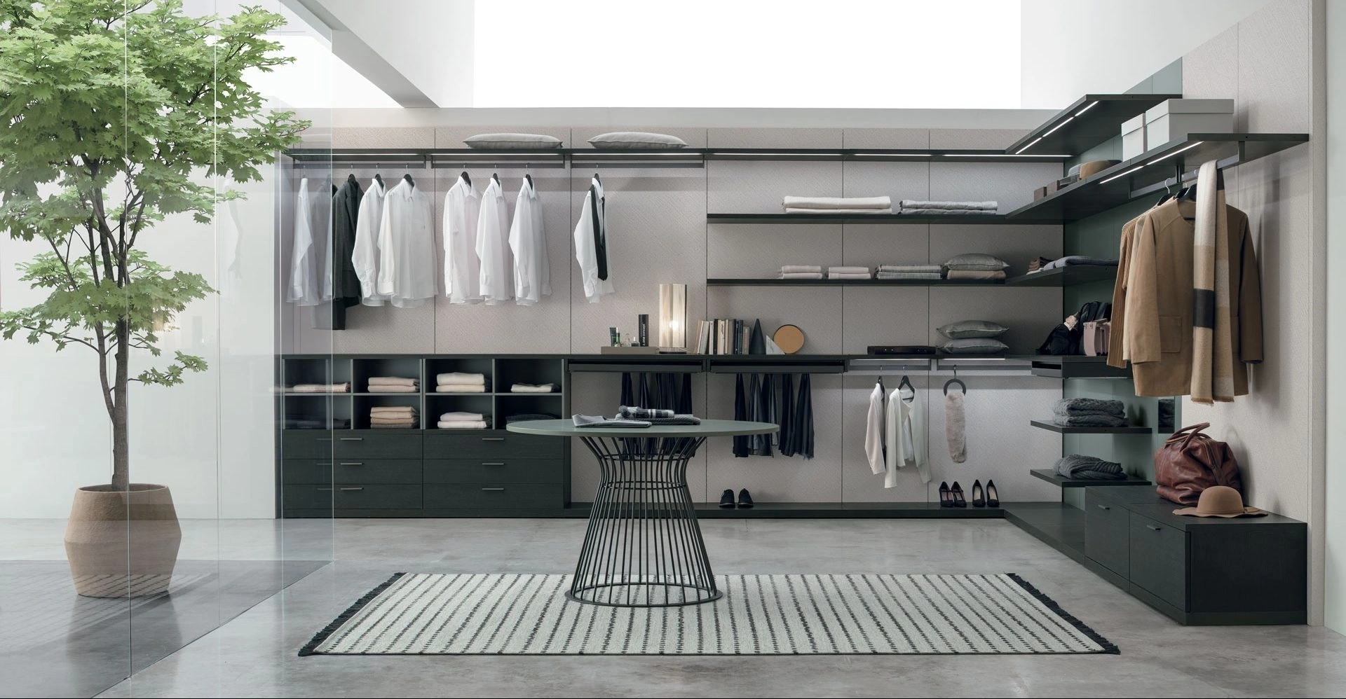 La cabina armadio Pratico di Tomasella incarna l'eccellenza nella progettazione modulare, offrendo una versatilità straordinaria per ogni spazio. Questo sistema si distingue per le sue boiserie ampiamente personalizzabili, disponibili in una ricca palette di finiture materiche come canvas, basalto opaco, rovere carbone, alpaca e noce ambra, oltre a raffinate laccature opache come il rubino. La struttura interna è stata concepita per la massima funzionalità, integrando cassettiere sia sospese che a terra, ripiani con avanzata illuminazione LED e una serie di accessori estraibili per un'organizzazione impeccabile. Dettagli come le staffe e gli elementi in metallo antracite, insieme ai frontali in vetro fumè per le cassettiere, ne esaltano l'estetica contemporanea. Le cassettiere sospese con sistema a gola sono proposte in diverse larghezze, da 43,7 cm a 117,2 cm, garantendo soluzioni su misura per ogni esigenza di contenimento. La flessibilità progettuale di questo sistema modulare assicura una configurazione ottimale per ogni ambiente, un tratto distintivo di prodotti di alta qualità.