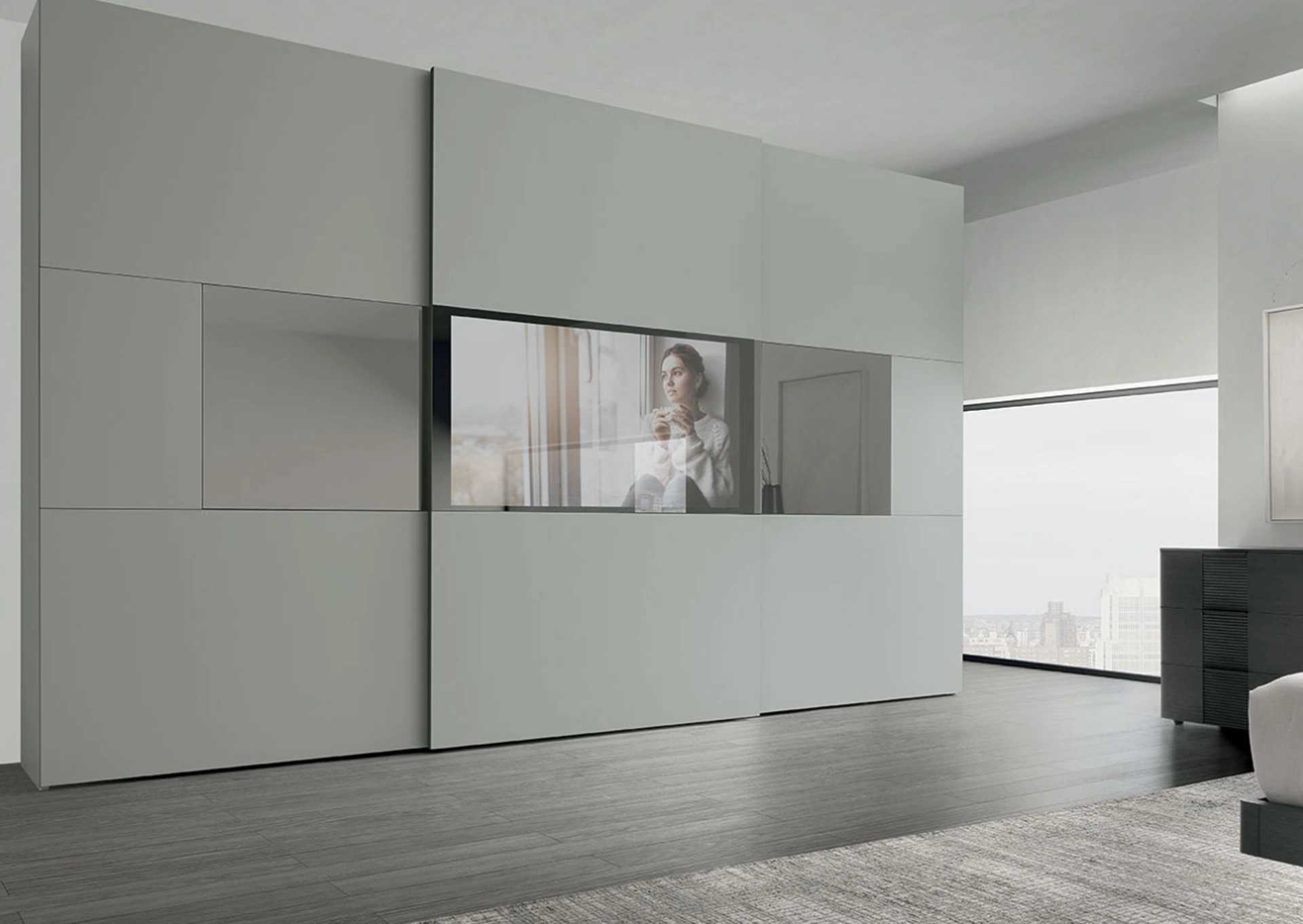 Questo innovativo armadio scorrevole Primafila di Tomasella è progettato per la zona notte, offrendo una fusione impeccabile tra estetica contemporanea e funzionalità avanzata. La sua caratteristica distintiva è l'anta predisposta per l'integrazione discreta di un televisore (non fornito), che, grazie al vetro Stopsol, scompare visivamente quando spento, mantenendo un'armonia pulita nell'ambiente. Questa soluzione è l'ideale per chi cerca di combinare l'intrattenimento multimediale con un design ricercato. È disponibile in un'ampia gamma di configurazioni e finiture, che includono superfici in materico rovere moka o materico opaco marna per la struttura e le ante, arricchite da inserti centrali in vetro Stopsol e profili/maniglie integrate in metallo. L'eccellenza costruttiva e l'attenta selezione dei materiali impiegati garantiscono durabilità e prestazioni superiori, con finiture pensate per integrarsi armoniosamente in ogni contesto abitativo moderno.