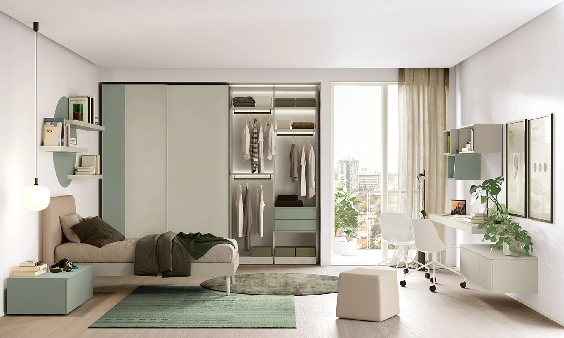 Quali vantaggi offre la cameretta Golf Y16 di Colombini Casa in termini di modularità?La cameretta Golf Y16 è pensata per essere modulare e crescere nel tempo con i tuoi figli, adattandosi alle loro esigenze in ogni fase della crescita. Permette di combinare letto, armadio, scrivania e libreria in modo flessibile.