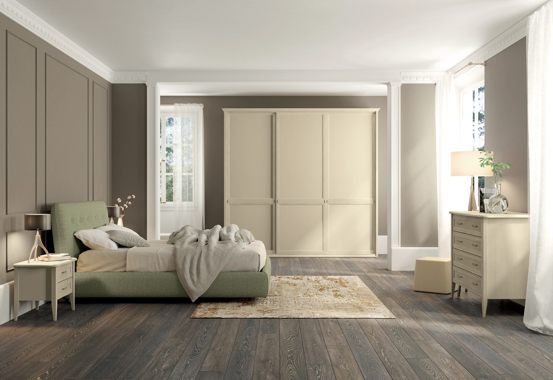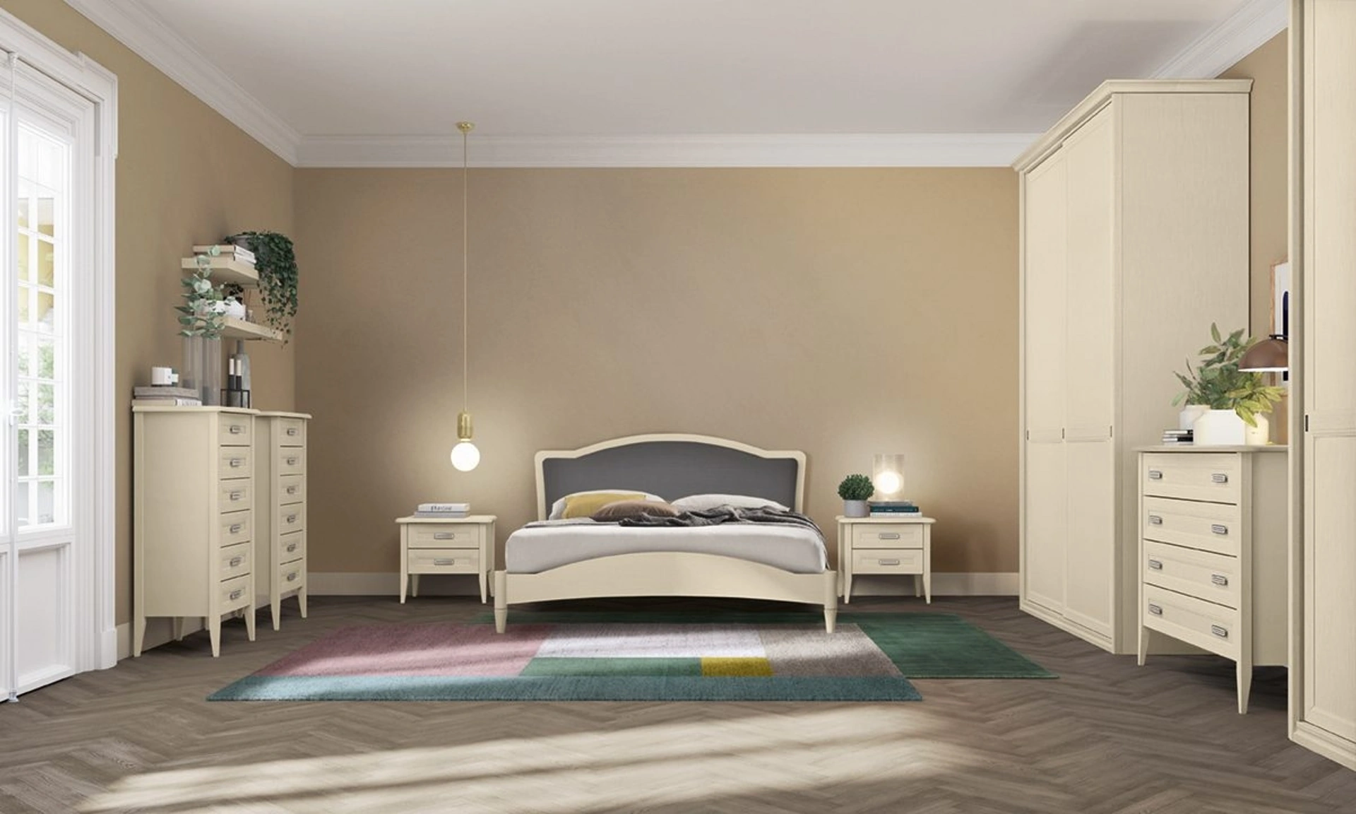 Quali sono le caratteristiche distintive del Gruppo Notte Arcadia Country Chic?Il Gruppo Notte Arcadia Country Chic di Colombini Casa si distingue per il suo stile raffinato e accogliente, ideale per la zona notte. Il design si focalizza su finiture che richiamano l'estetica country chic, offrendo un'atmosfera calda e curata.
