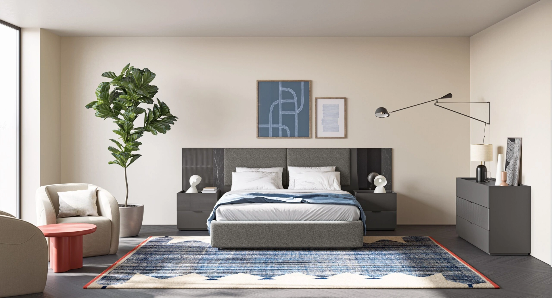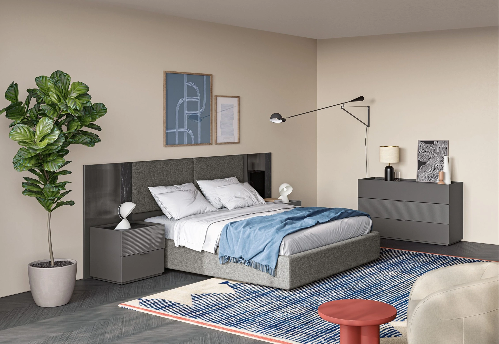 Posso personalizzare le dimensioni del Gruppo Notte Eclettica EN01?Sì, Visone Casa S.r.l. offre la possibilità di personalizzare le dimensioni standard degli arredi, inclusi gli elementi del Gruppo Notte Eclettica EN01. I nostri esperti ti assisteranno con consulenze a domicilio e progettazione 3D.