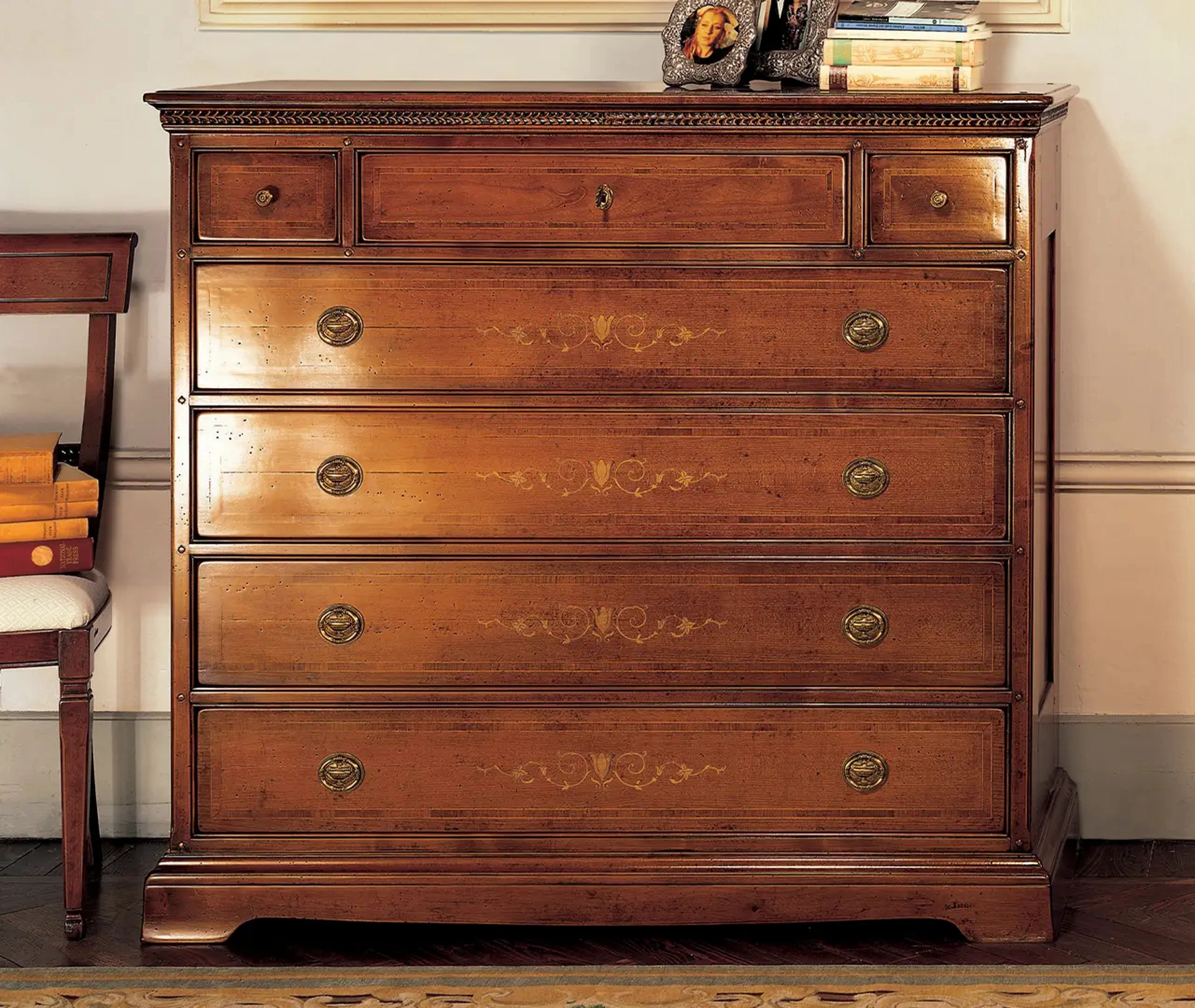 Quali sono le caratteristiche principali dei cassetti del comò Fiordaliso?Il comò Fiordaliso presenta cassetti spaziosi e robusti, progettati per offrire massima funzionalità e durata. Puoi richiedere maggiori dettagli sui meccanismi di apertura e sulle guide in negozio.