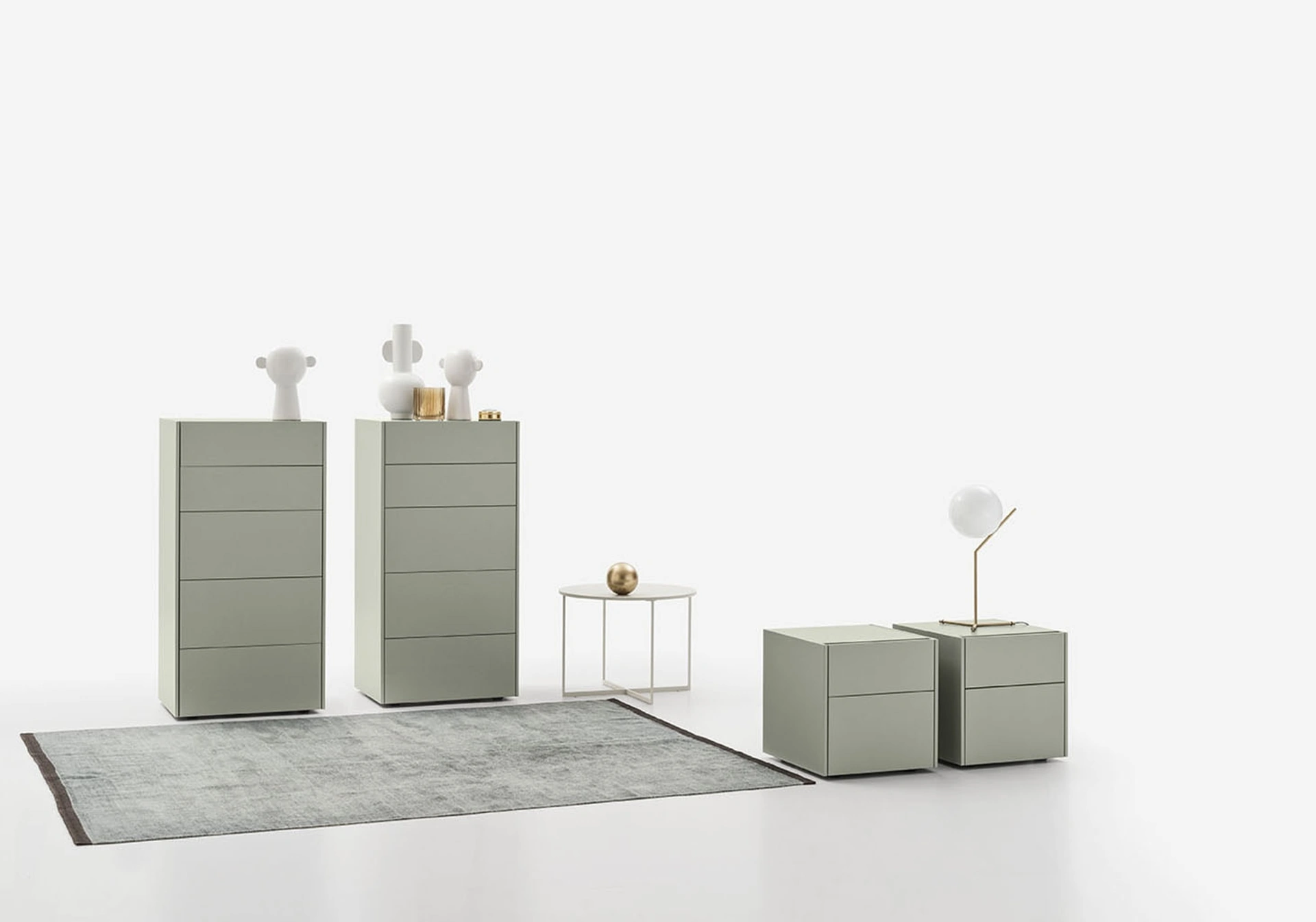 Il gruppo notte Gorge di Alf DaFrè si distingue per la sua moderna concezione e la flessibilità compositiva. La collezione comprende comodini disponibili in tre diverse larghezze, comò con configurazioni a 3 o 6 cassetti e settimanali proposti in due dimensioni. L'innovativo meccanismo di apertura dei cassetti è realizzato tramite una discreta gola integrata nel top, elemento che può essere ulteriormente arricchito con un sistema di illuminazione dedicato, enfatizzando la funzionalità e l'estetica. Il design è sapientemente orchestrato attraverso contrasti materici, offrendo la scelta tra un top in finitura tradizionale o in Laminam, un materiale all'avanguardia per resistenza e impatto visivo. La struttura, composta da scocca e frontali, è concepita per accogliere un top a contrasto, elevando l'estetica contemporanea del mobile. Questo sistema modulare di alta ingegneria offre una personalizzazione avanzata, tipica delle soluzioni di design più innovative.