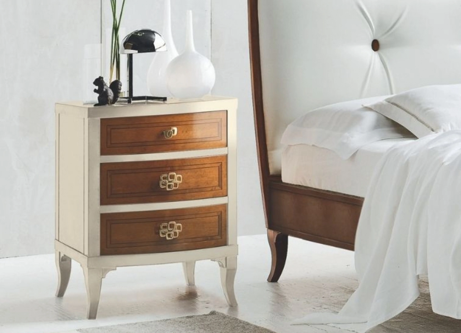 Il comodino Comodino Luna, art. G212, opera di Le Fablier e parte integrante della Collezione Le Mimose, esprime una raffinatezza duratura e una precisione costruttiva notevole. Concepito per infondere calore e sofisticazione, il suo design è contraddistinto da un'armoniosa dialettica tra materiali e palette cromatiche. Le sue forme dolci e leggere si ispirano all'estetica ottocentesca. La struttura, in Legno di tiglio, è proposta in varianti cromatiche classiche e bicolore per massima versatilità. L'integrazione tra l'inconfondibile design italiano e la selezione rigorosa di materie prime conferisce al prodotto affidabilità e prestazioni estetiche superiori.