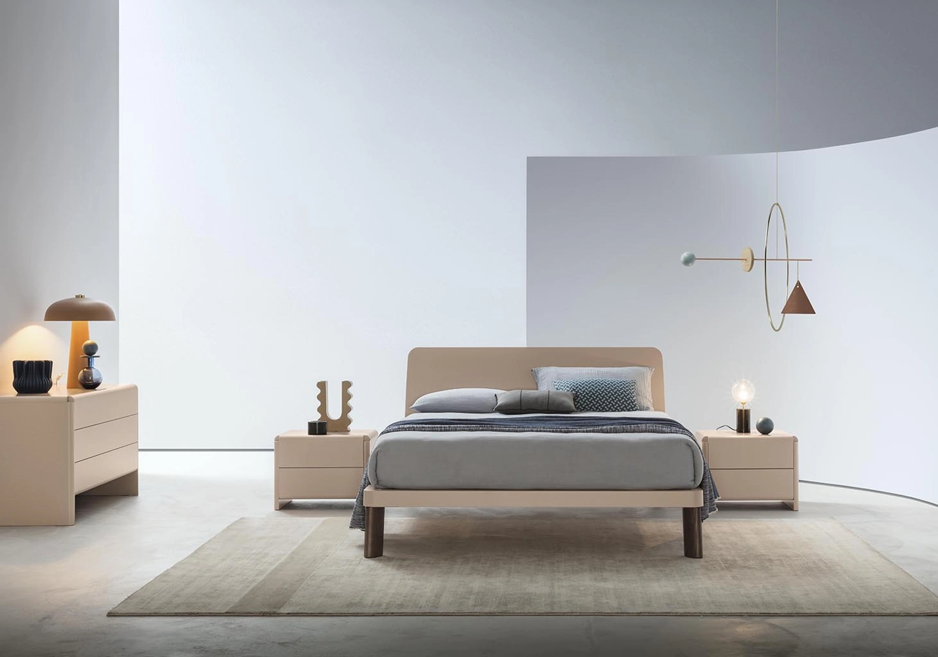 Quali opzioni di personalizzazione sono disponibili per il gruppo notte Mei?È possibile personalizzare le dimensioni standard degli arredi e scegliere tra diversi materiali come legno o laccato. Presso il nostro negozio puoi visionare i campioni di materiali e finiture nella nostra materioteca.