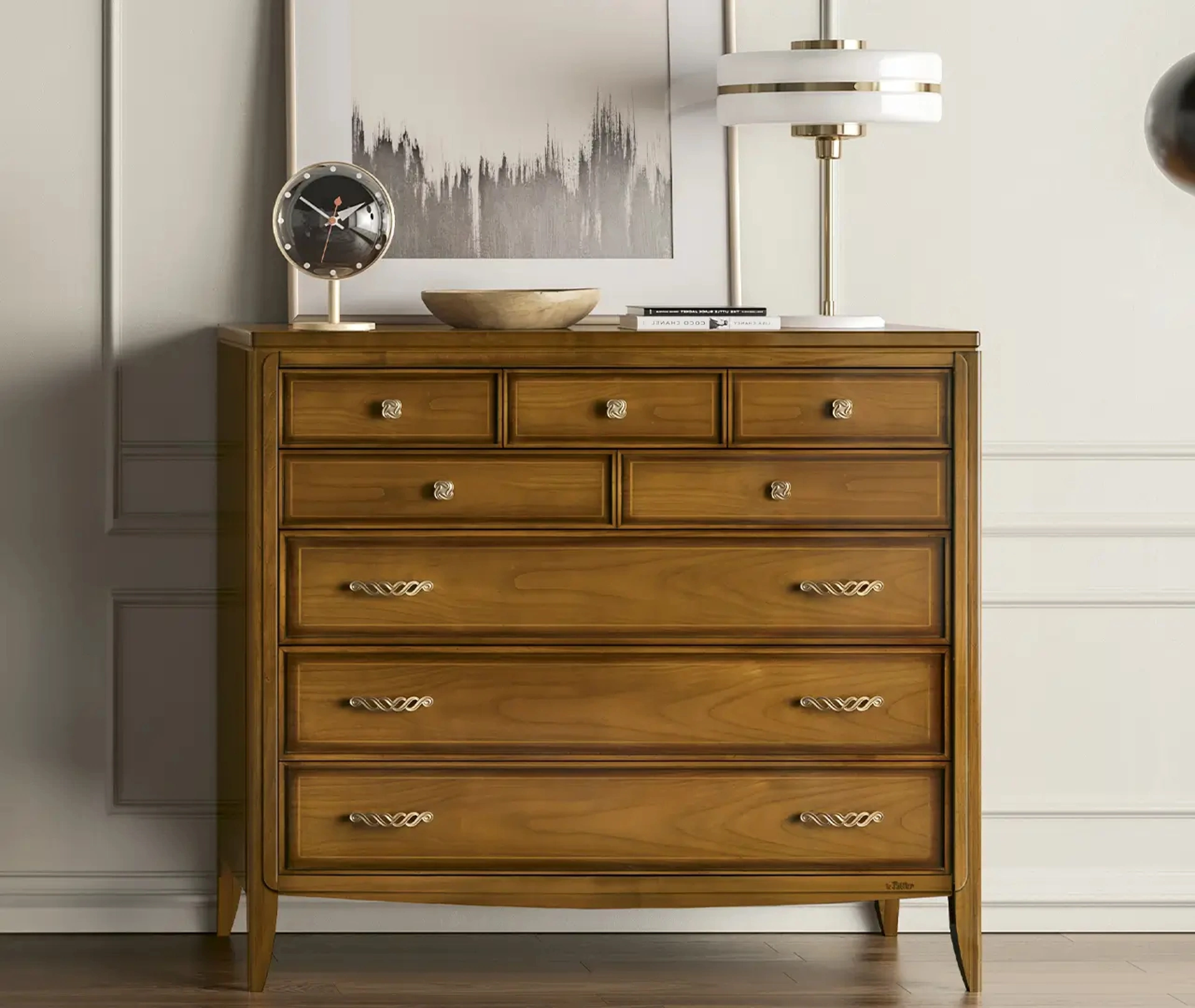 Il comò Pensiero ha particolari caratteristiche sui cassetti o ripiani?I comò Le Fablier sono progettati con attenzione alla funzionalità. I cassetti sono dotati di guide per un'apertura fluida e silenziosa, garantendo praticità nell'uso quotidiano.