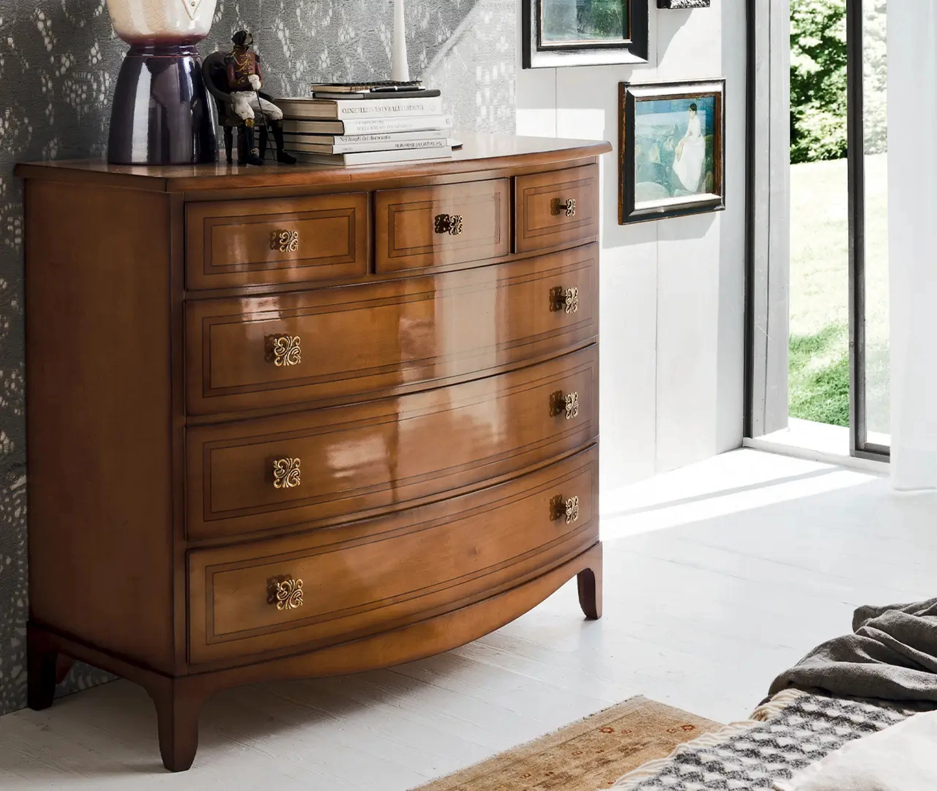 Materiali di qualità e lavorazioni eccellenti per il Comò Stella di Le Fablier in in legno, disponibile da noi con le altre differenti proposte della marca, per fare della zona del riposo uno spazio che rispecchi i tuoi gusti. Ti domandi in che modo abbinare letti, armadi e comò? Con il modello di Le Fablier visibile in foto avrai un pezzo di arredamento adatto per uno spazio dai richiami classici.