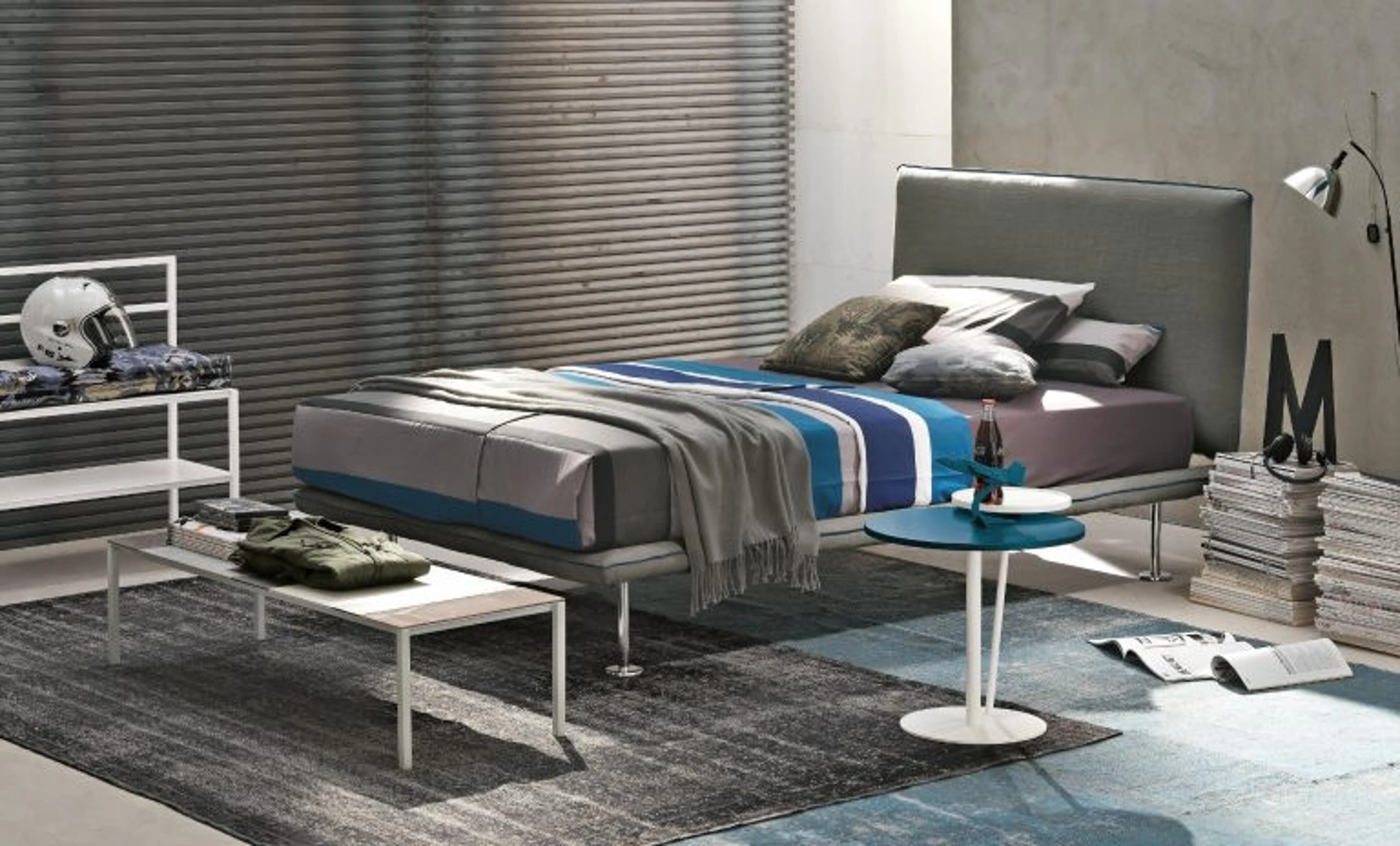 I Letti singoli imbottiti per la cameretta disponibili in negozio risolvono ogni problematicità di spazio e praticità, assicurando contemporaneamente un design unico. Scopri di più sul Letto singolo in tessuto Bravo di Tomasella nell'immagine: si adatta a creare alla perfezione un ambiente confortevole, bello e ben organizzato, ideale per i tuoi bambini. Materiali di prima scelta e pitture atossiche caratterizzano le proposte del brand: se la stanza ha dimensioni ridotte, sono disparate le soluzioni disponibili, sempre in grado di abbinare funzionalità ed ergonomia.