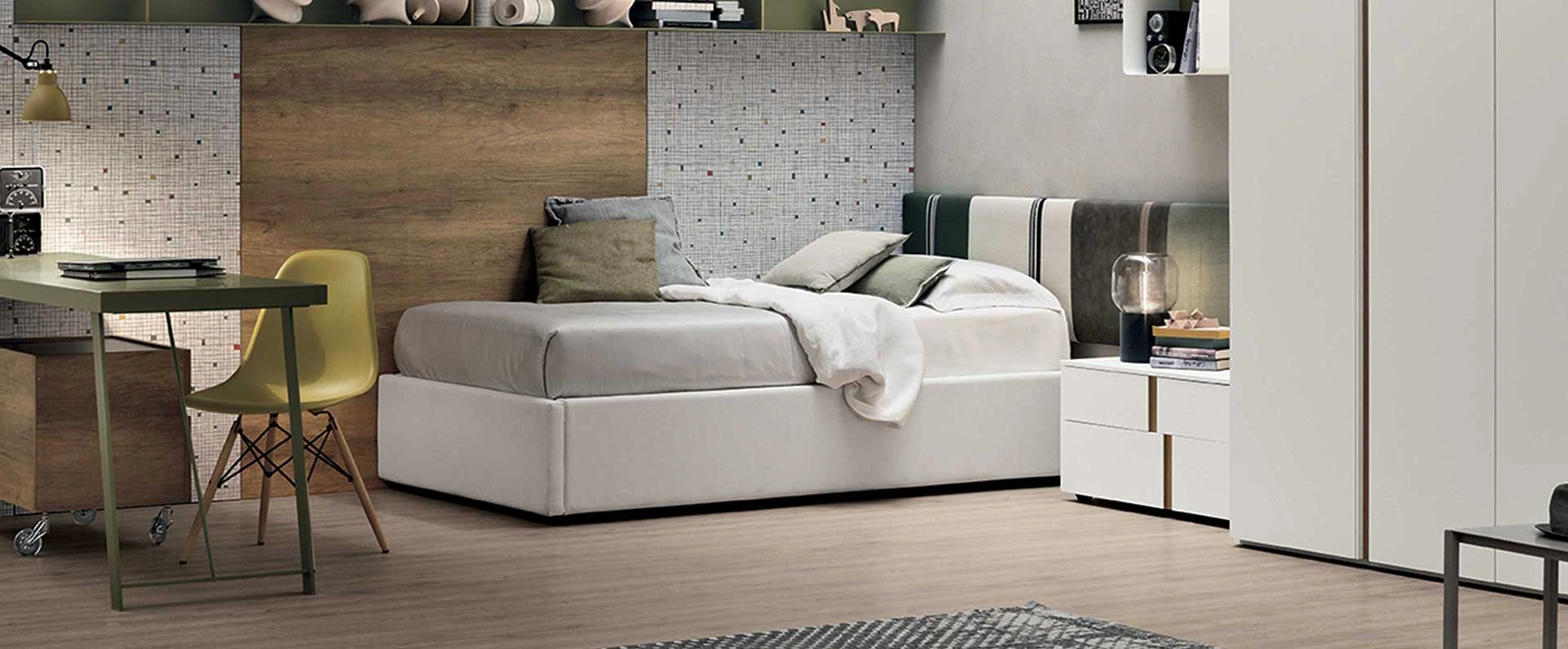 Quali opzioni di contenimento offre il letto singolo Diagonal di Tomasella?Il letto singolo Diagonal è disponibile con o senza contenitore sottoletto, offrendo soluzioni pratiche per ottimizzare lo spazio. Alcune versioni prevedono anche un comodo secondo letto estraibile, ideale per gli ospiti.