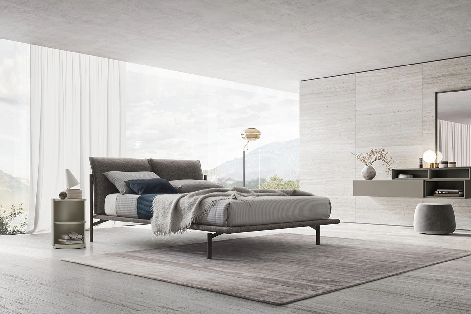 Il letto Atlas, firmato Alf DaFrè, è una creazione imbottita che combina sapientemente legno e metallo nella sua struttura. Il suo design distintivo emerge dalla configurazione unica dei piedini e dal loro inserimento obliquo nella piattaforma, generando un'impressione visiva di leggerezza e sospensione, ulteriormente enfatizzata dal giroletto dal profilo snello. Proposto in molteplici configurazioni dimensionali, offre una vasta selezione di rivestimenti per un'integrazione perfetta in ogni ambiente. I piedini, scolpiti in masselli di legno a sezione circolare, sono disponibili in raffinate finiture come Fashion wood o noce, garantendo versatilità estetica. Questo prodotto rappresenta l'apice della flessibilità progettuale e della personalizzazione, caratteristiche distintive dei marchi leader del settore.