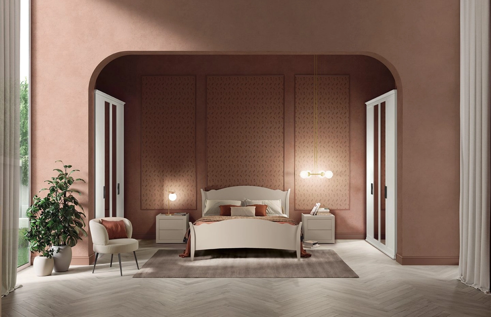 Per completare al meglio l'arredo della tua zona notte è indispensabile valutare gli accostamenti del letto con armadi e comodini, elementi accessori e quant'altro: se vuoi arredi classici, il modello nella fotografia fa per te. Il Letto con testiera sagomata Arcadia Rainbow di Colombini Casa è uno dei prodotti più originali del brand, sinonimo di durata negli anni, qualità delle finiture e un design unico. Contattaci e scopri di più sulla nostra collezione di Letti matrimoniali con testiera: valorizza la tua zona notte con le nostre soluzioni.