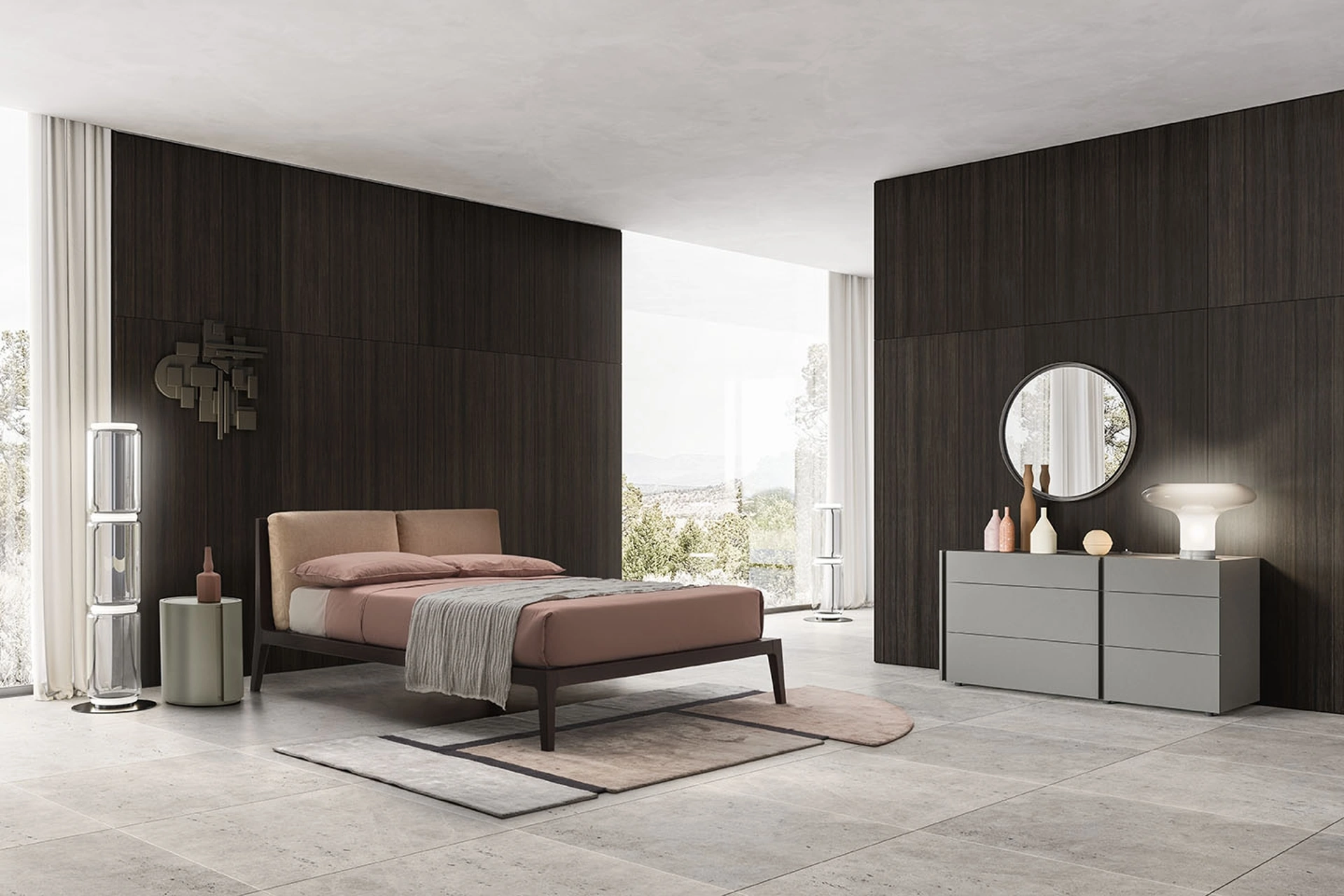 Il letto Dorian 2, firmato Alf Da Frè, è un modello matrimoniale che incarna l'eccellenza del design moderno. La sua struttura, interamente realizzata in legno, presenta una testiera dalle linee pulite e morbide, che richiamano un'eleganza di ispirazione retrò. La leggerezza visiva e la raffinatezza estetica sono esaltate da dettagli costruttivi come l'accurata finitura della testiera, il disegno ricercato delle gambe e l'armoniosa curvatura degli elementi strutturali, che conferiscono al prodotto un valore distintivo. Per un comfort superiore e una personalizzazione ulteriore, è possibile integrare morbidi cuscini alla testiera. Il modello Dorian 2.0 è offerto in due configurazioni: con o senza cuscini. Nella variante equipaggiata con cuscini imbottiti, la piattaforma è stata ingegnerizzata per avere una profondità leggermente maggiore, garantendo un perfetto alloggiamento dei cuscini senza compromettere l'armonia del design. Per un'analisi approfondita delle specifiche tecniche, delle diverse finiture e delle opzioni di personalizzazione disponibili, vi invitiamo a consultare la documentazione tecnica.