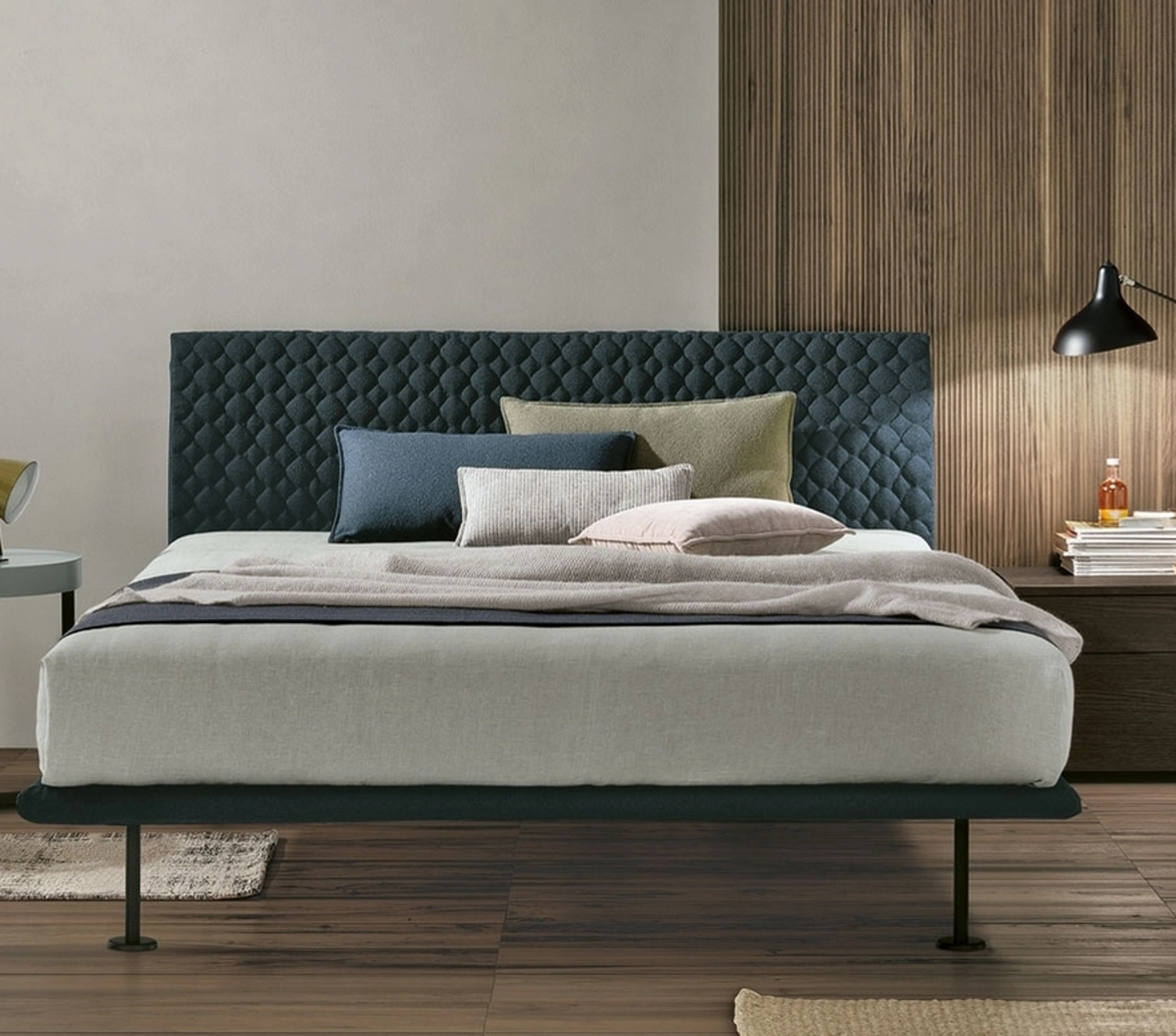 Letto Seven Plus con testiera trapuntata di Tomasella