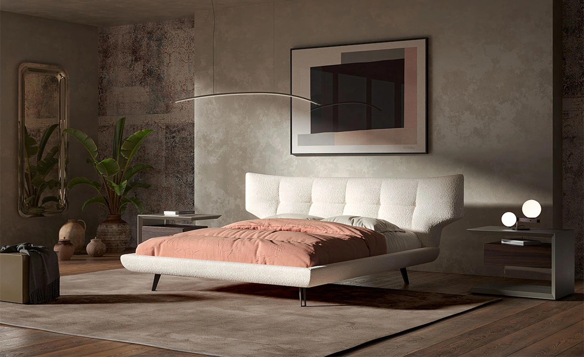 Il letto Thomas, firmato Cattelan Italia, si distingue per la sua struttura imbottita, personalizzabile con un'ampia gamma di rivestimenti che include ecopelle, tessuti pregiati, micro nubuck o vera pelle, tutti selezionabili dal campionario ufficiale. Il design è impreziosito dai piedi in acciaio con finitura verniciata goffrata, disponibili nelle varianti bronzo (GFM18) o graphite (GFM69), che conferiscono stabilità e un tocco di eleganza contemporanea. La dotazione include una robusta rete strutturale, garantendo un supporto ottimale. Ogni dettaglio costruttivo è curato per assicurare durabilità e prestazioni costanti nel tempo, riflettendo l'eccellenza manifatturiera del brand.
