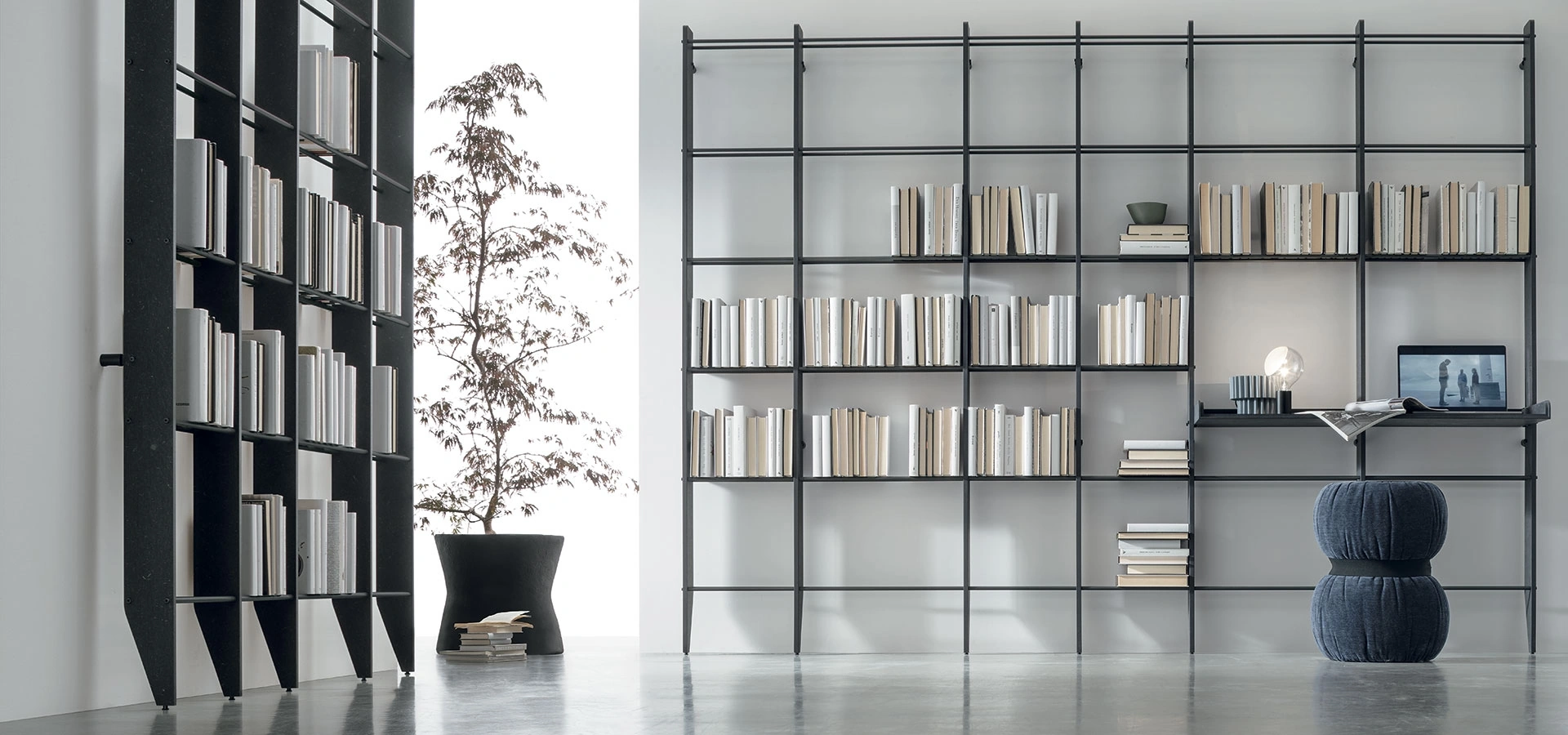 Libreria TIME UNIT TI 122 in CDF venato nero e tubi in metallo di Tomasella