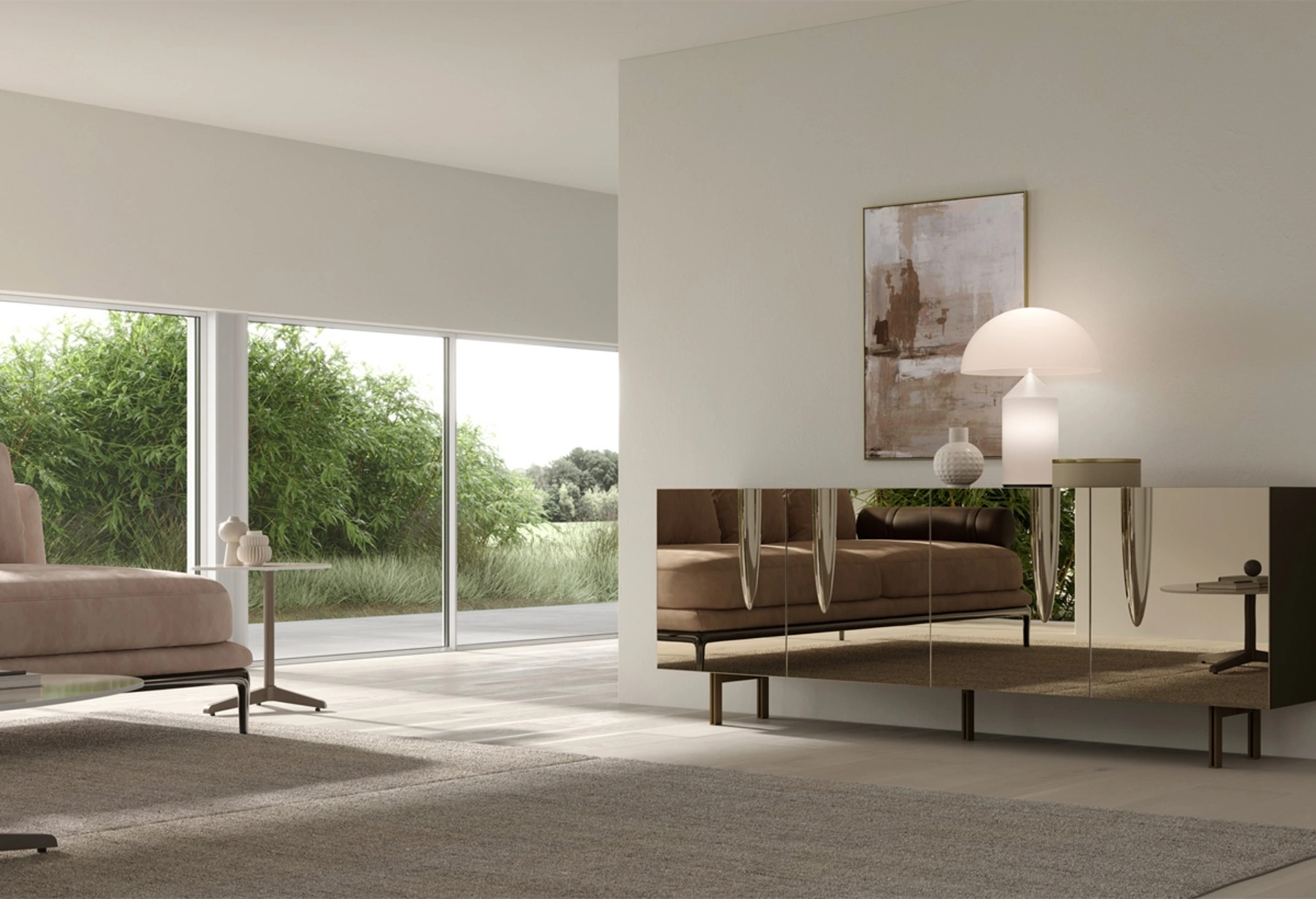 Presso Visone Casa S.r.l. ad Alife, ti attende la madia Aura 220 di Target Point, un mobile credenza che incarna un design prezioso ed elegante, ideale per ogni soggiorno moderno. La sua esclusiva finitura a specchio amplifica lo spazio, mentre le piegature sui frontali, che fungono da discrete maniglie, aggiungono un tocco dinamico. Questo pezzo d'arredo è costruito con solidi supporti metallici, una base in laminato spazzolato di alta resistenza e pannelli a specchio in vetro personalizzabili in diverse finiture. La scocca offre ulteriori opzioni di abbinamento in laminato opaco, spazzolato o effetto legno, garantendo un'estetica regale e imponente. Visita il nostro showroom per scoprire le imperdibili offerte e le consulenze personalizzate che solo Visone Casa S.r.l. può offrirti nella zona di Alife e dintorni.