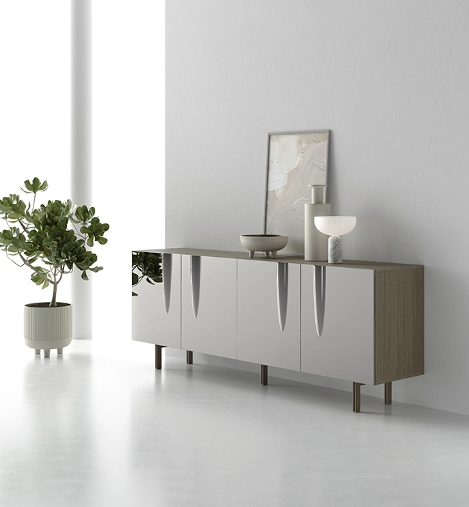 Quali opzioni di personalizzazione e materiali sono disponibili per la madia Aura 220?La madia Aura 220 può essere personalizzata in dimensioni e finiture. Presso il nostro showroom, potrai visionare un'ampia materioteca per scegliere i materiali e i rivestimenti più adatti al tuo stile.