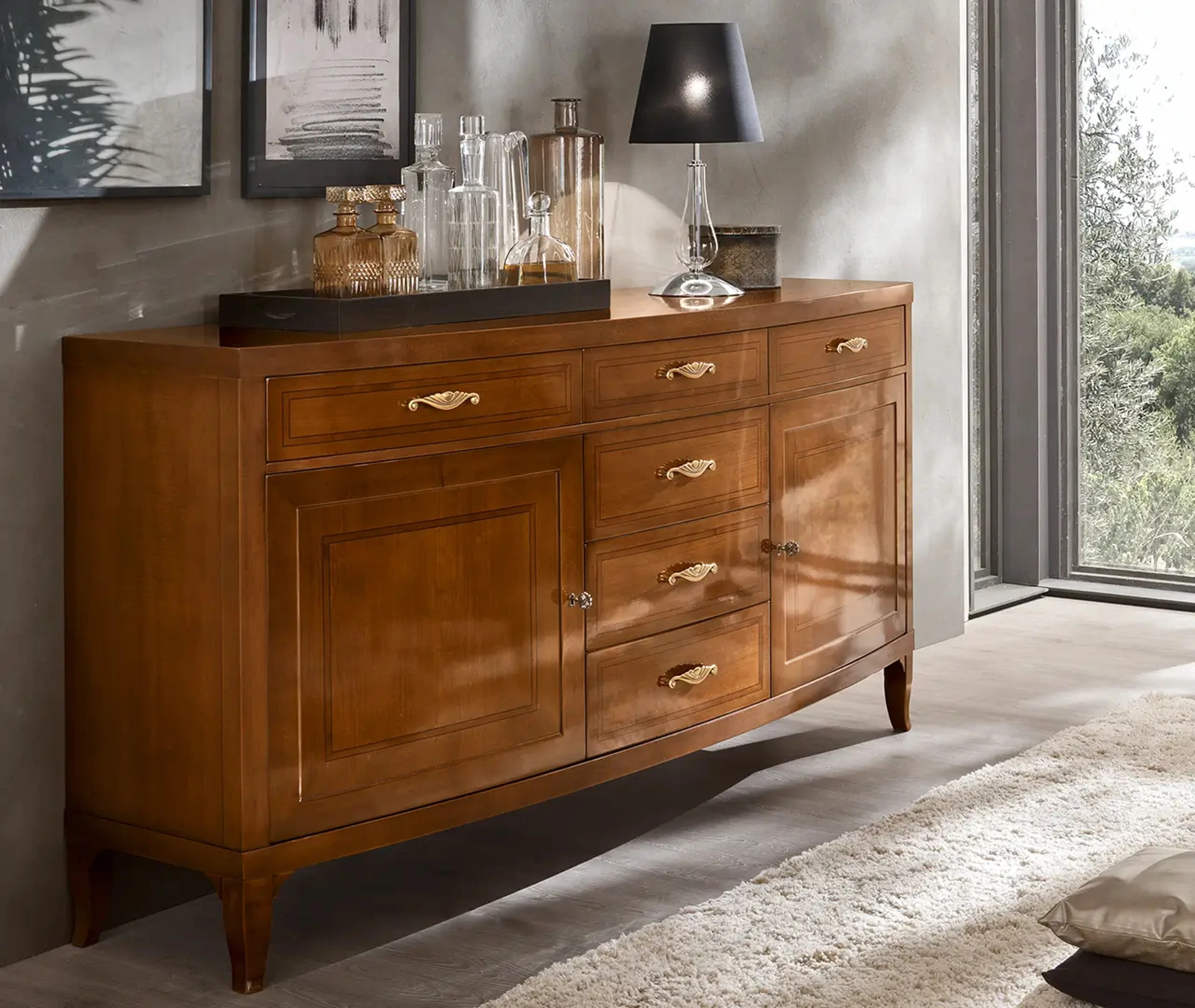 Per un living o una zona pranzo di tutto rispetto, prediligi questa Madia Cassiopea di Le Fablier in legno tra le molteplici proposte classiche dell'azienda. Considera che spesse volte ospiterai a casa familiari e amici per qualche ora in compagnia: è imprescindibile che lo spazio sia ben gestito e bello da vedere. Le Madie sono utili per organizzare oggettistica assortita, libri e riviste, nonché a valorizzare il locale unendo al meglio doti di praticità e design. Se desideri una madia in legno da collocare nella tua abitazione, non perdere l'occasione di toccare con mano le nostre esclusive composizioni arredative.