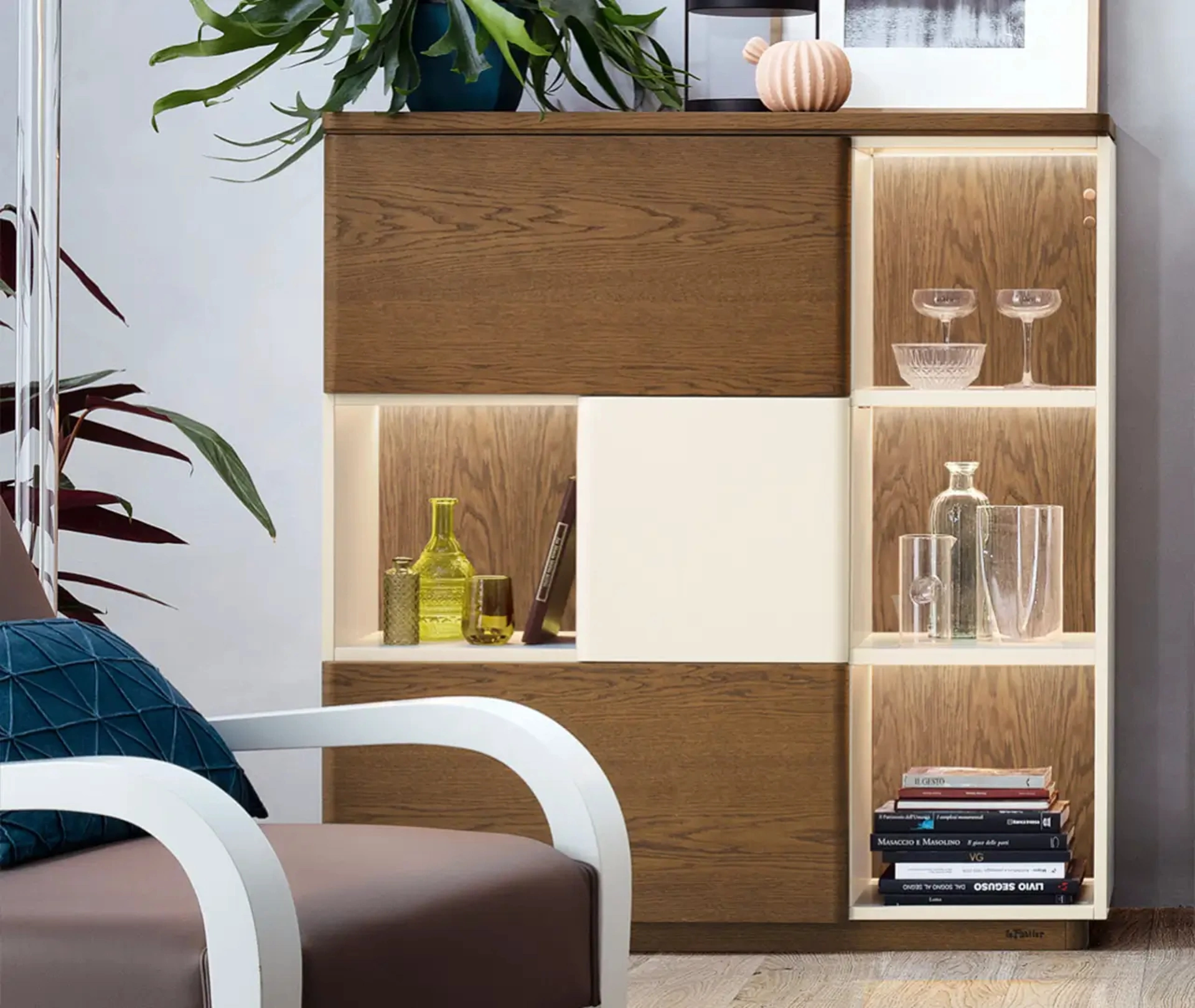 La splendida madia Madia Kama di Le Fablier è ora disponibile presso il nostro showroom Visone Casa S.r.l. a Alife. Venite a scoprire un arredo che combina un design nordico ispirato agli anni '30 con la funzionalità moderna. Questo mobile per il living, parte della collezione Fiori di Loto, presenta due ante in essenza e quattro cubotti con illuminazione LED, offrendo una soluzione versatile ed elegante. Potrete personalizzarla con finiture in Rovere massello, scegliendo tra essenze come Zenzero, Tabacco, Cenere, Avorio, Bianco, Tortora, Cipria, o laccature opache come Avorio e Grigio. Il marchio a fuoco Le Fablier è sinonimo di autenticità e qualità artigianale superiore. Questo pezzo d'arredo, tra i più apprezzati nella nostra area di Alife, vi aspetta per essere ammirato dal vivo.