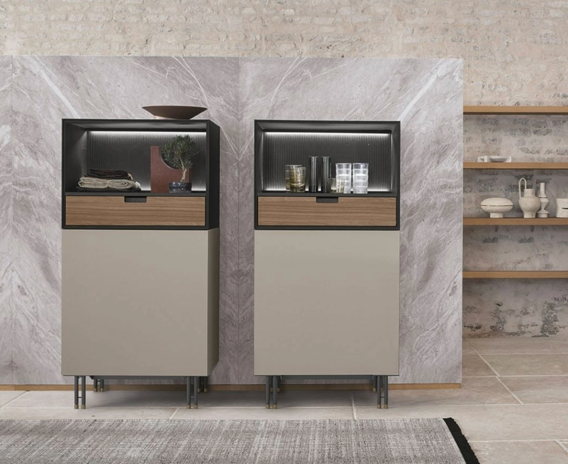 | Materiale: | CDF arena, CDF noce ambra, CDF venato nero, CDF venato nero canettè, Metallo antracite |