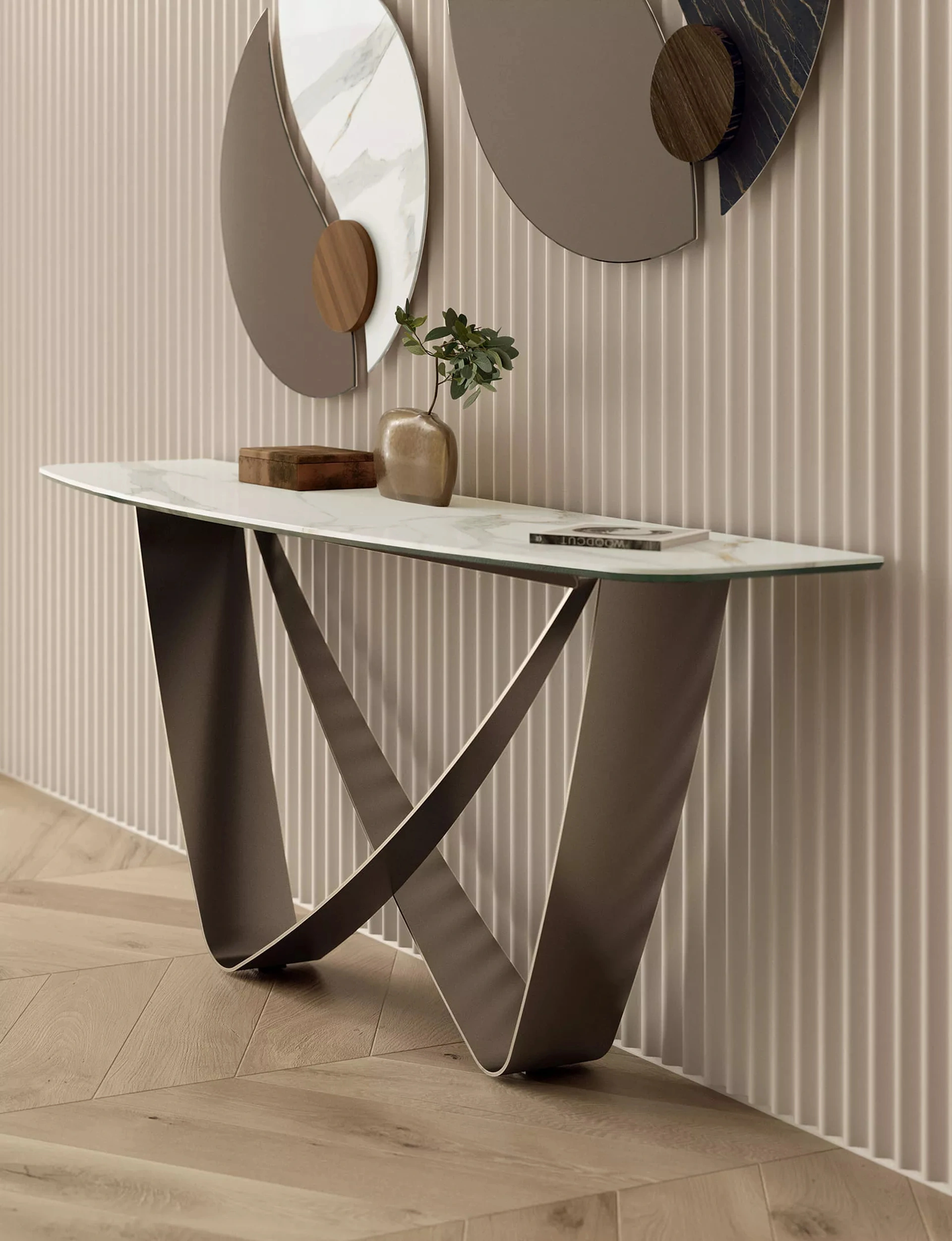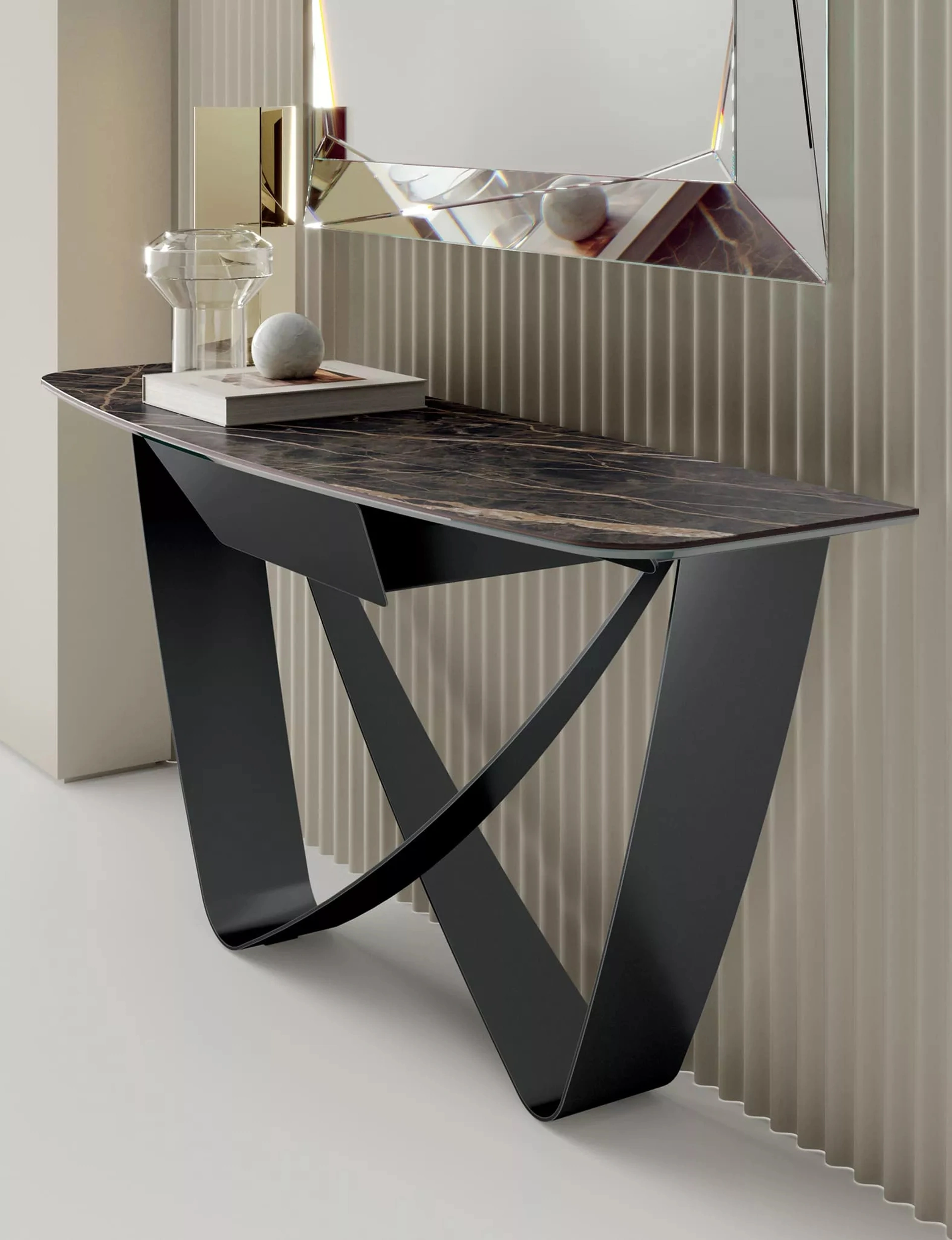 Quali vantaggi offre una consolle per l'ingresso come la Bach SuperMarmo?Una consolle per l'ingresso ottimizza gli spazi, offrendo una superficie d'appoggio elegante e funzionale. È ideale per organizzare piccoli oggetti e accogliere gli ospiti con stile.