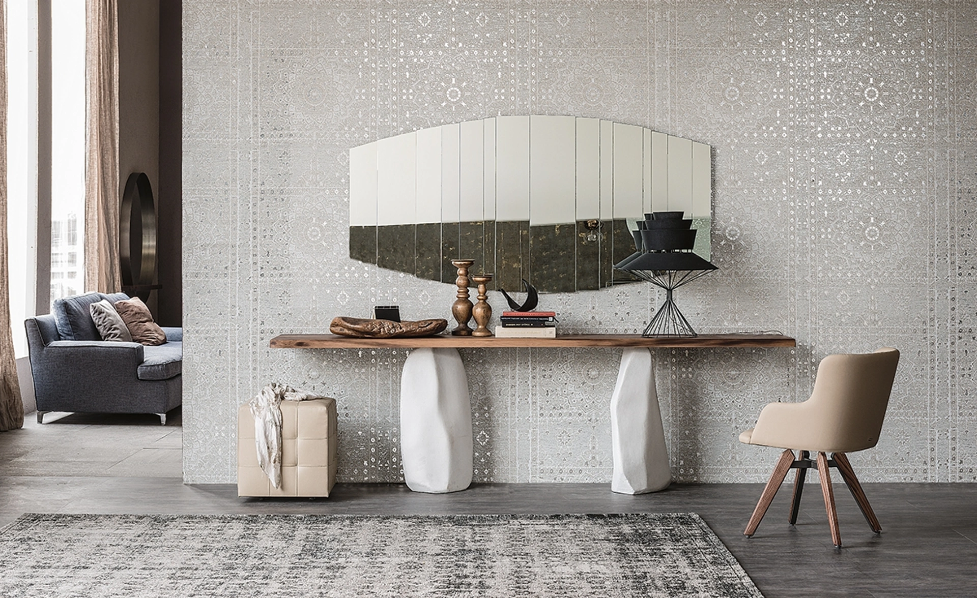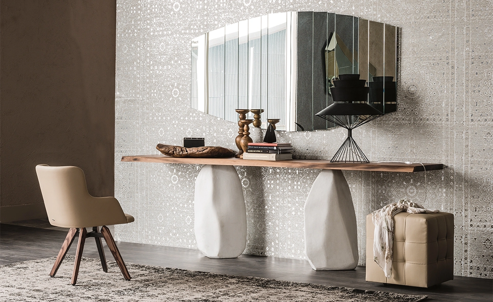 Scopri la straordinaria console Rapa Nui di Cattelan Italia, un capolavoro di design che fonde l'eleganza naturale con una manifattura d'eccellenza. Questo pezzo unico è disponibile per essere ammirato e acquistato direttamente presso il nostro showroom, Visone Casa S.r.l., situato ad Alife. Il suo distintivo piano in pregiato legno massello, che sembra fluttuare su una base monolitica, offre una sensazione tattile unica e un'estetica organica che trasforma ogni ambiente. Visone Casa S.r.l. si conferma il tuo partner d'arredo ideale per case e uffici nella provincia di Caserta, offrendo soluzioni di design esclusive e un servizio impeccabile.