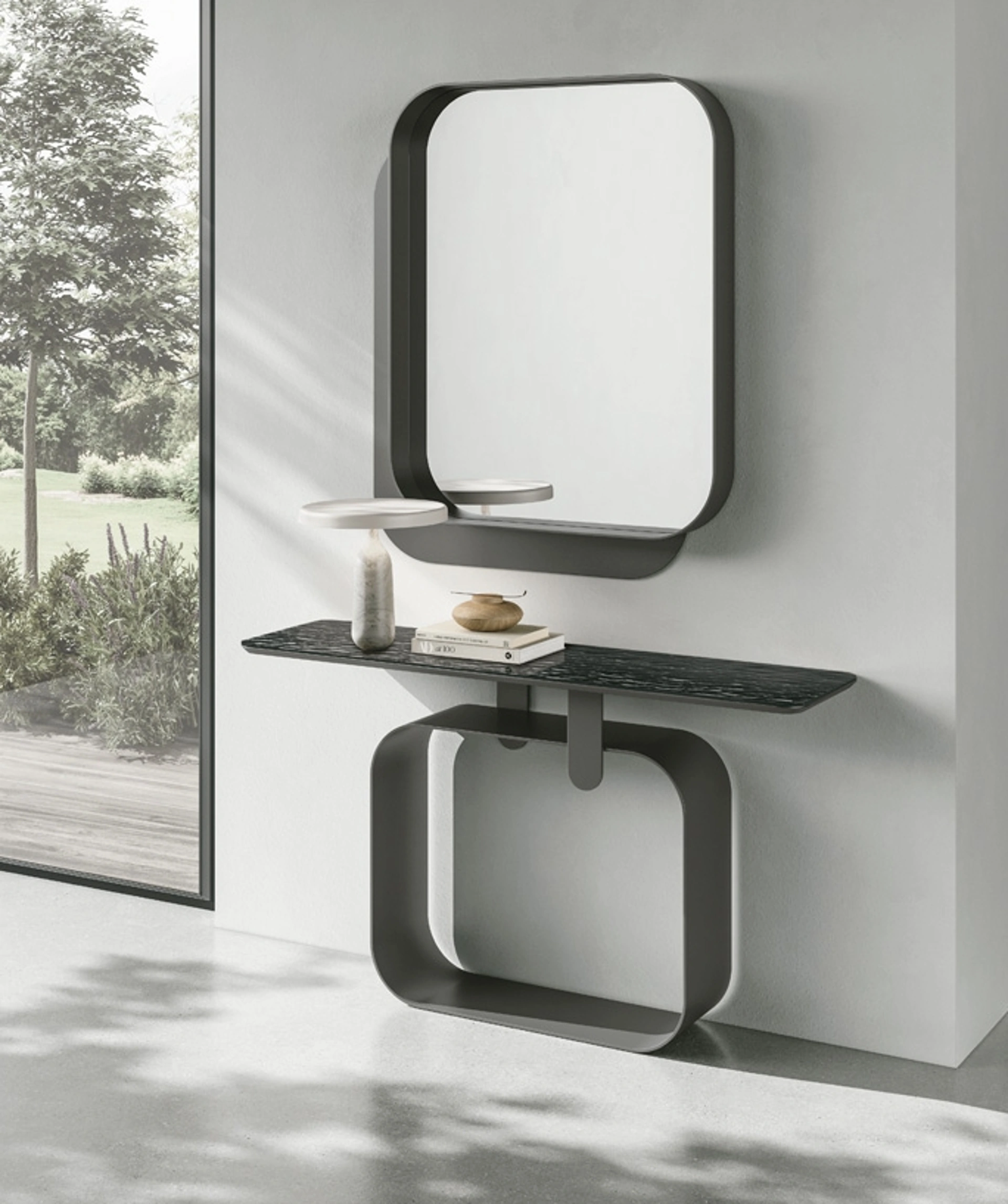 Quali sono i vantaggi principali della Consolle Quadra per l'ingresso?La Consolle Quadra di Target Point è pensata per ottimizzare gli spazi, anche quelli più ridotti, del tuo ingresso. Il suo design elegante la rende una soluzione funzionale per l'appoggio di oggetti e come elemento decorativo.