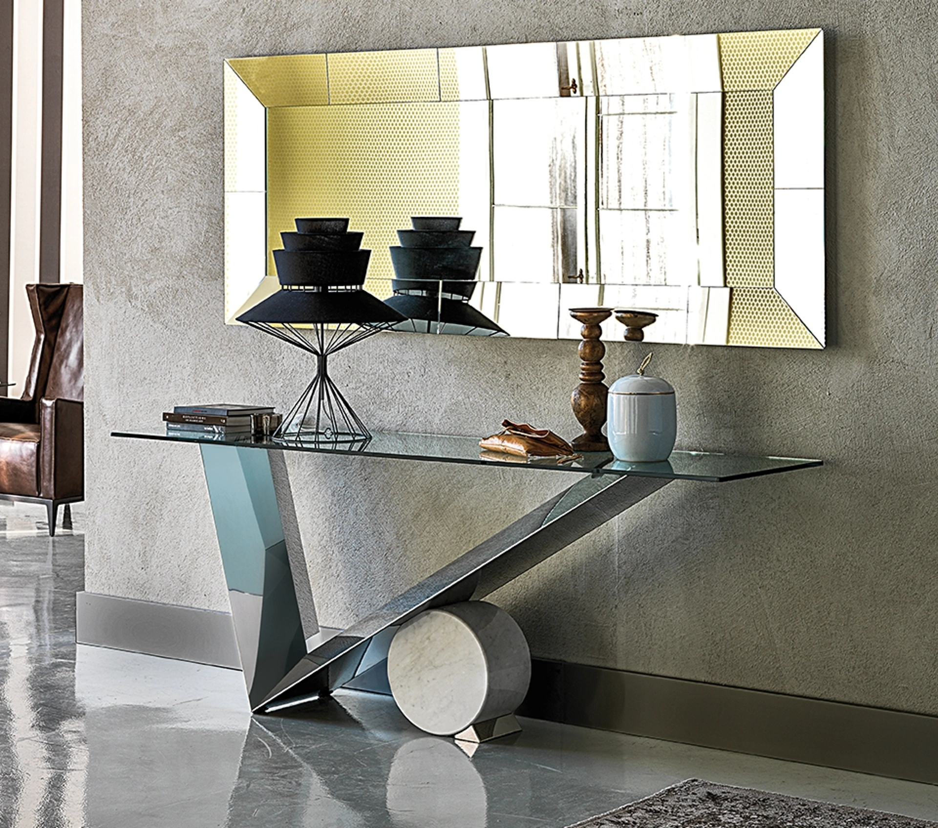 | Materiale: | Acciaio inox lucido, Marmo Travertino, Marmo Nero Marquina, Marmo Bianco Carrara, Cristallo trasparente |
