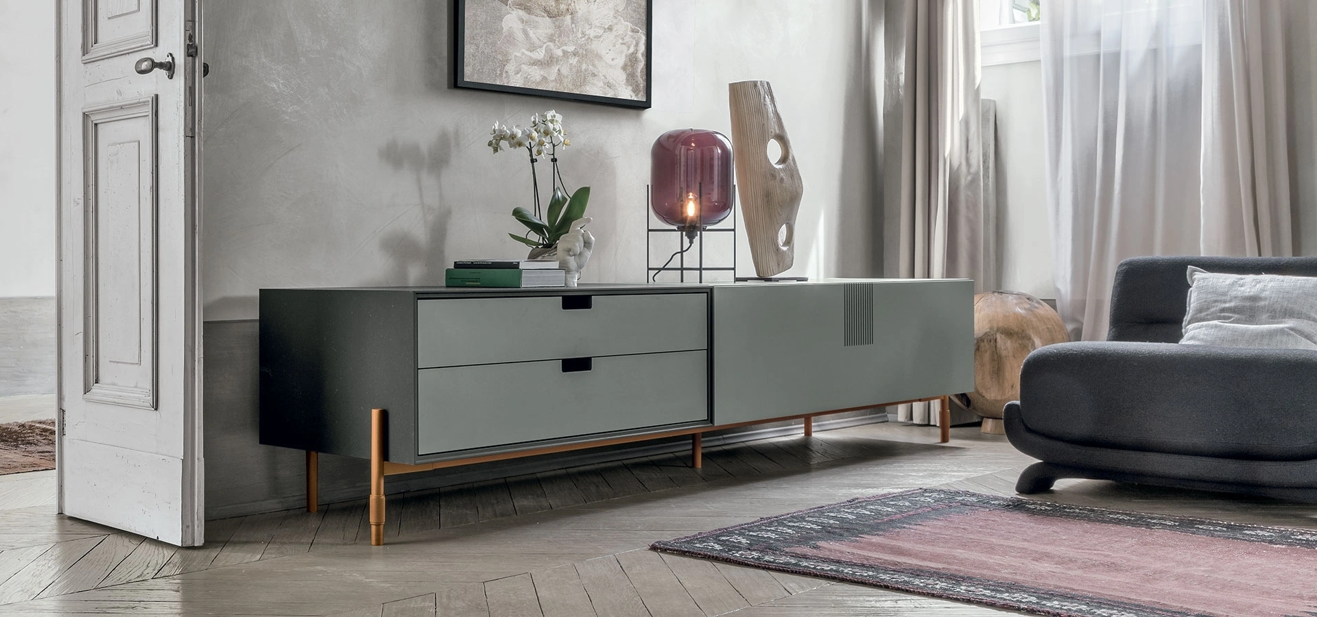È possibile personalizzare le dimensioni o i materiali del mobile porta TV TIME UNIT TI 107?Certamente. Presso Visone Casa S.r.l. è possibile personalizzare le dimensioni standard degli arredi. Potrai visionare un'ampia materioteca con campioni di materiali come legno e laccati per scegliere la finitura ideale per il tuo progetto.