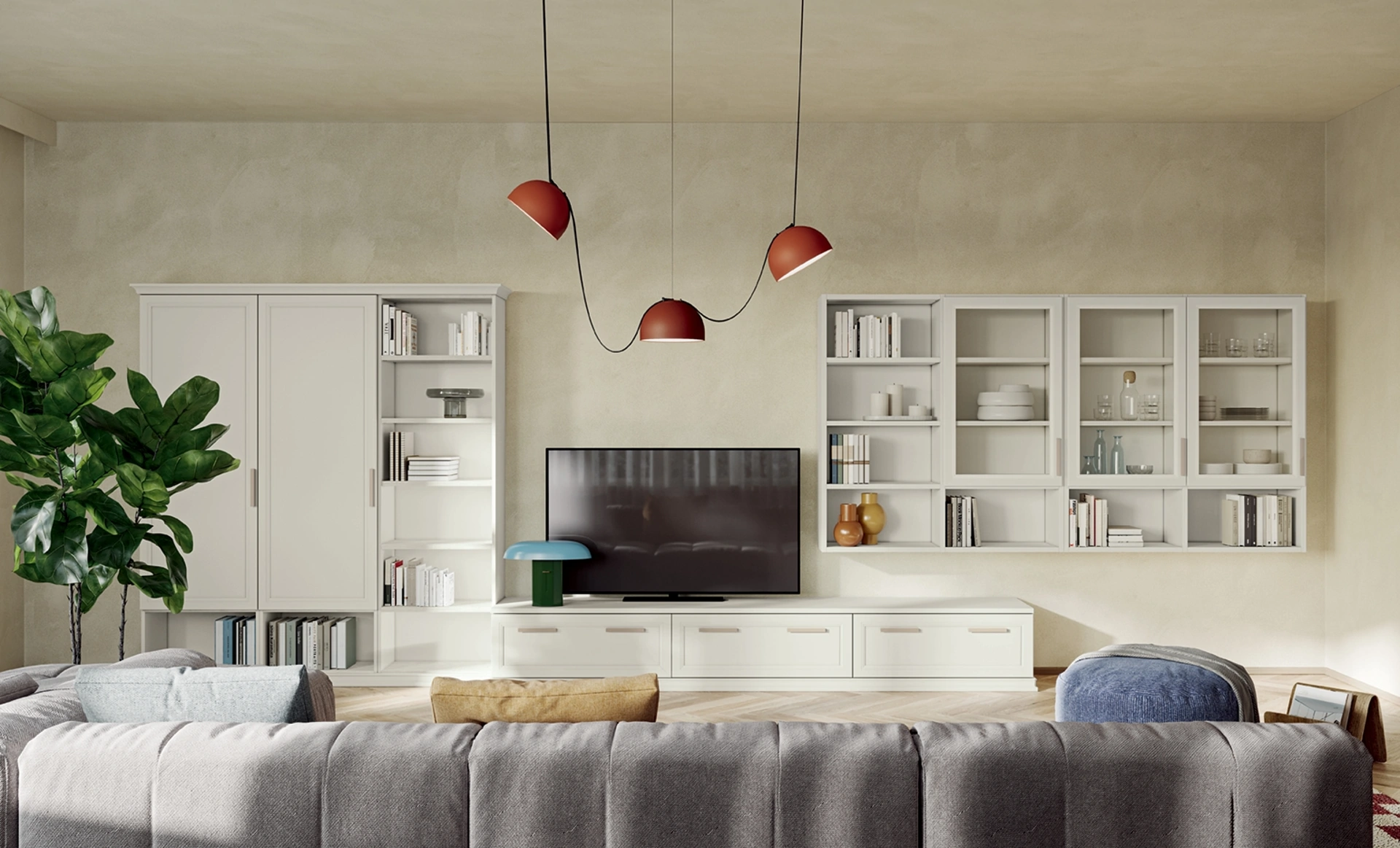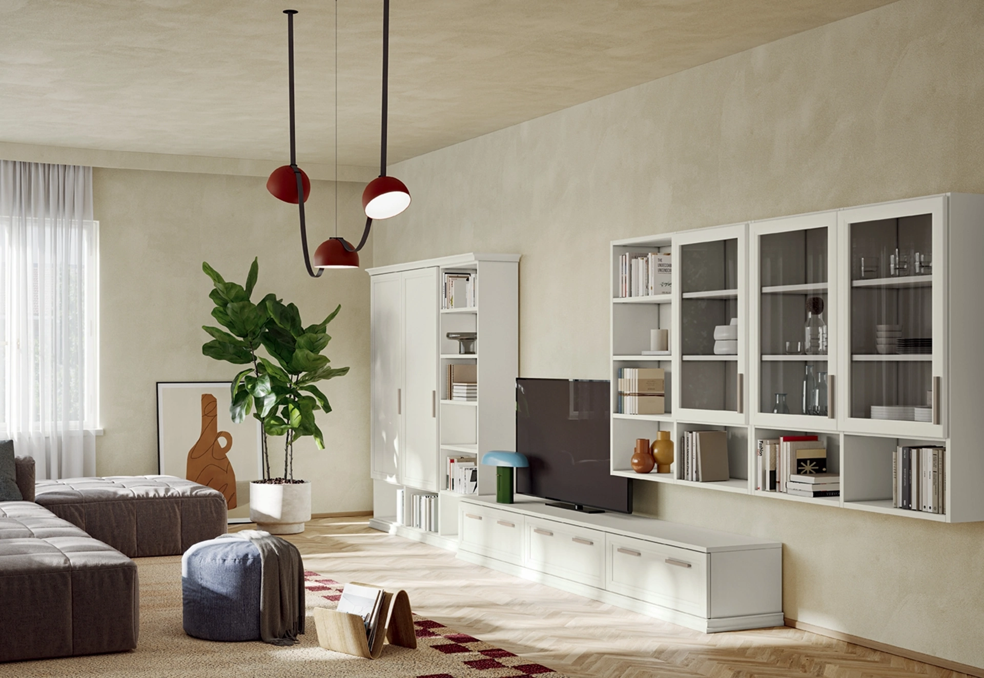 La parete attrezzata Arcadia AS003 include soluzioni per l'integrazione della TV o illuminazione LED?Le pareti attrezzate Colombini Casa, come l'Arcadia AS003, sono progettate per integrare moduli TV con passacavi. Inoltre, possono essere arricchite con illuminazione LED per creare un'atmosfera accogliente e funzionale.