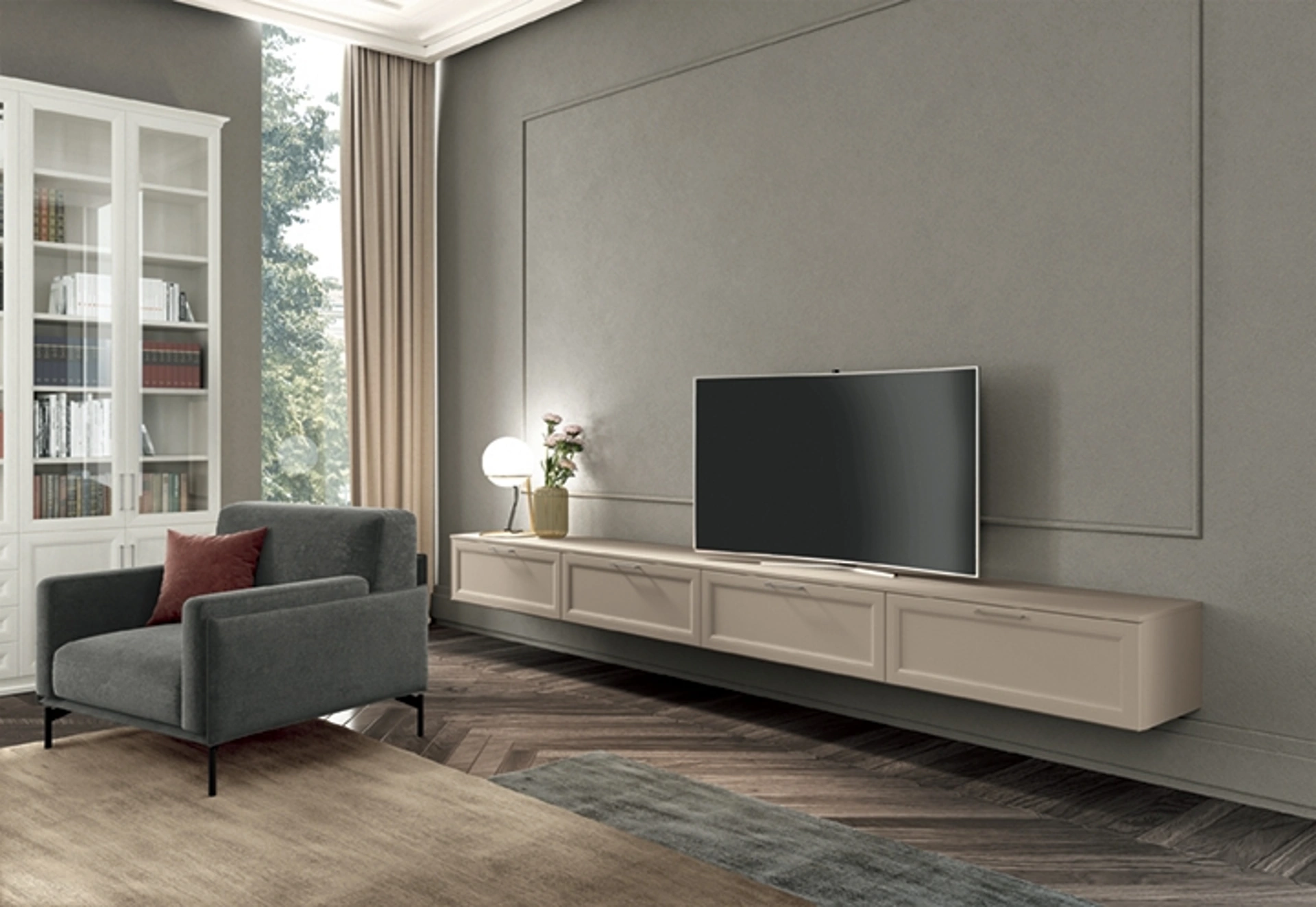 La composizione Arcadia AS006 di Colombini Casa incarna un'estetica classica, con linee che richiamano la tradizione e un design attentamente studiato. Progettata per integrarsi armoniosamente in vari ambienti domestici, dal soggiorno alla zona notte, presenta finiture cromatiche delicate che evocano un'atmosfera romantica e raffinata. AS006 si distingue per la sua modularità e rappresenta una soluzione versatile all'interno delle Pareti Attrezzate Classiche, offrendo funzionalità ed eleganza. L'eccellenza costruttiva e la cura dei dettagli assicurano un prodotto di alta qualità e lunga durata.