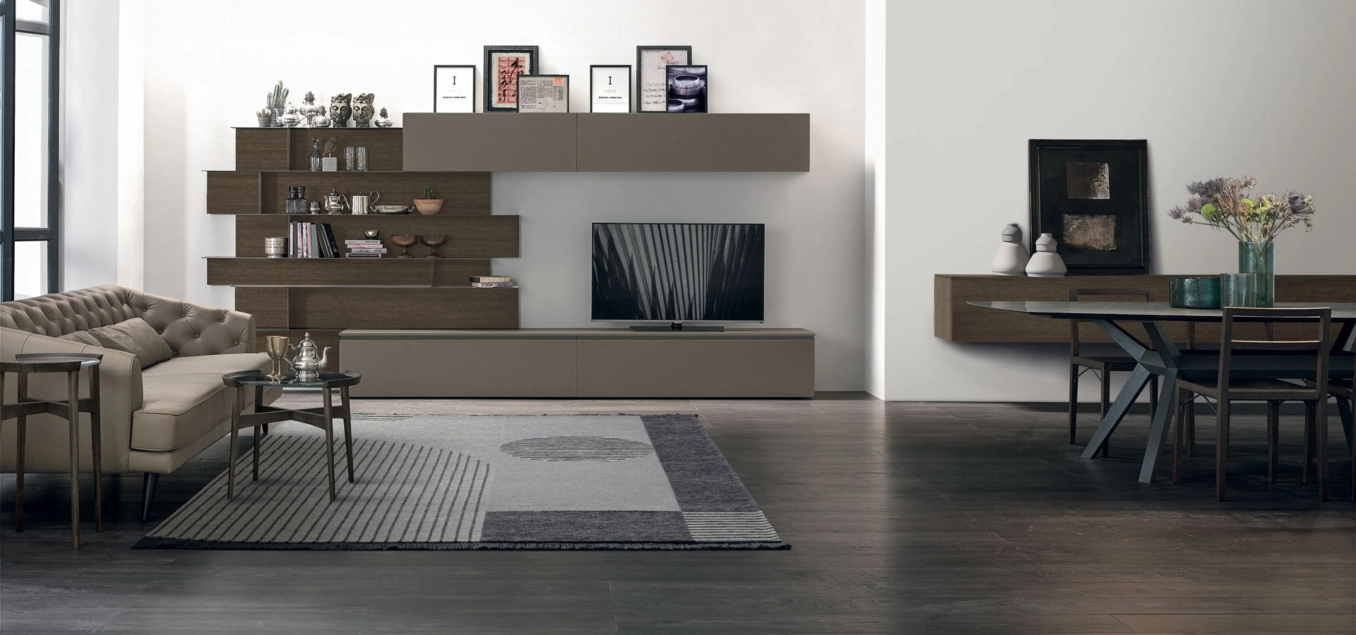 Quali sono i vantaggi di scegliere la parete attrezzata Atlante UNIT AT113 di Tomasella?Scegliere l'Atlante UNIT AT113 significa optare per un prodotto modulare e personalizzabile, realizzato con materiali e finiture di qualità. Visone Casa S.r.l. offre inoltre un servizio completo dal progetto al montaggio.