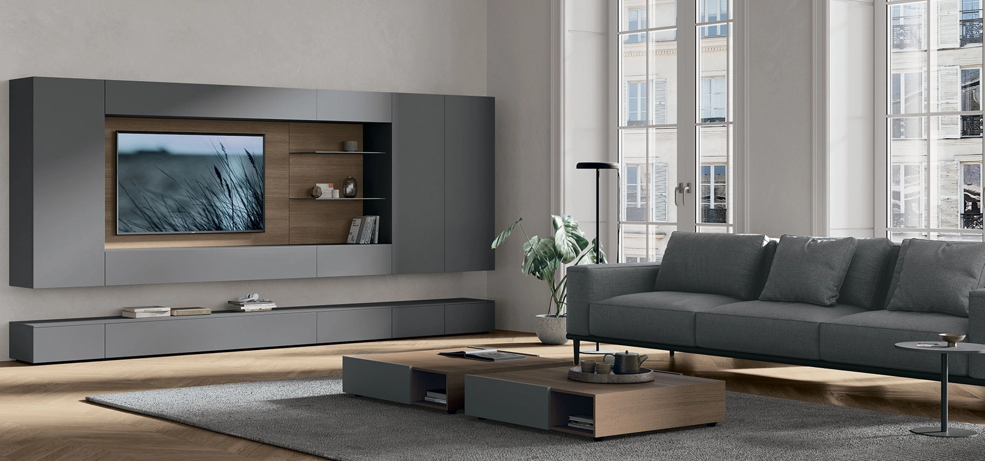 Quali materiali e finiture sono disponibili per la parete attrezzata Tomasella Atlante UNIT AT143?Presso Visone Casa S.r.l. troverai una materioteca completa dove visionare, scegliere e farti consigliare su materiali, finiture e rivestimenti disponibili per la parete attrezzata Atlante UNIT AT143. Questo ti permette di coordinare al meglio il design con il tuo ambiente.