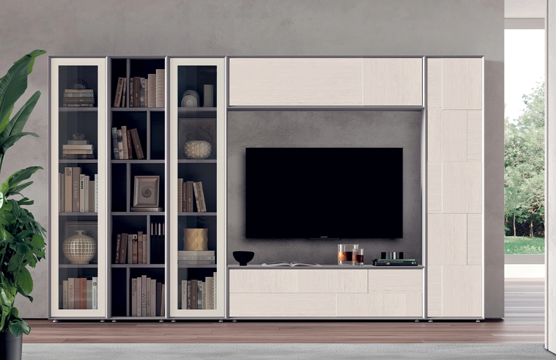 La composizione 23 della linea Le Spezie di Le Fablier incarna un design contemporaneo e minimalista, offrendo una soluzione d'arredo versatile per la zona living. Questo sistema modulare si distingue per la sua struttura ben definita, che include una base solida, una colonna verticale e un pensile superiore dotato di vani contenitore chiusi, studiati per ottimizzare lo spazio e mantenere l'ordine. La disposizione degli elementi crea un equilibrio visivo armonioso, trasformando la parete in un fulcro estetico e funzionale. Per esplorare in dettaglio le configurazioni disponibili e le specifiche tecniche, è possibile approfondire la documentazione del prodotto.