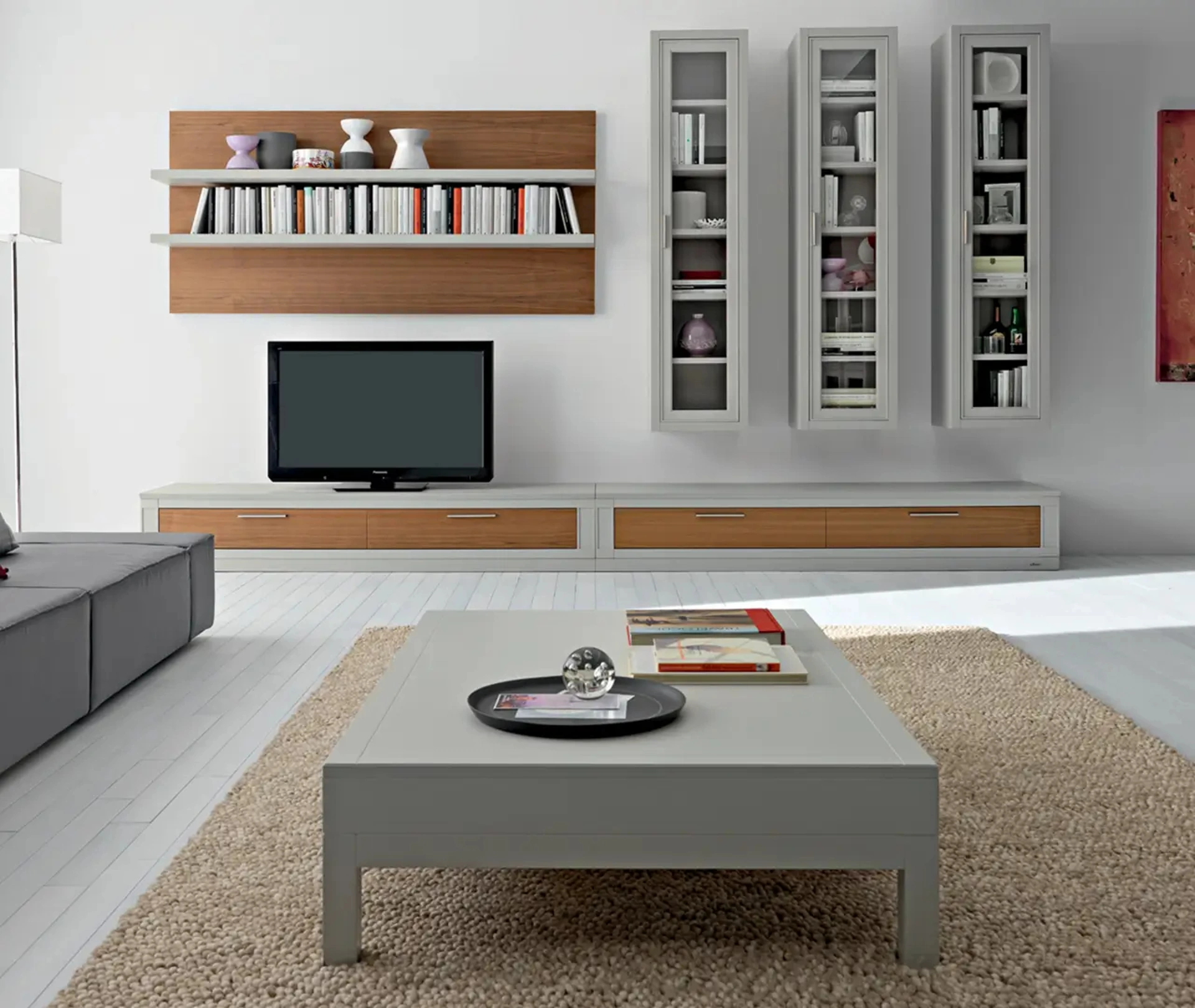 Attraverso un gioco dinamico di accostamenti fra accessori a giorno o vani chiusi, le Pareti Attrezzate moderne arredano il living usufruendo al meglio di ogni spazio. Per informazioni e preventivi sulla Parete Attrezzata Melograno composizione 14 di Le Fablier nella fotografia contattaci! Il modello proposto è realizzato in legno, ma grazie ad un'ampia gamma di finiture, tonalità e forme, potrà adattarsi a stili di ogni genere. Le Pareti Attrezzate hanno conquistato un posto importante nella zona giorno delle nostre case: sono mobili multifunzionali e salvaspazio sempre realizzabili su misura.