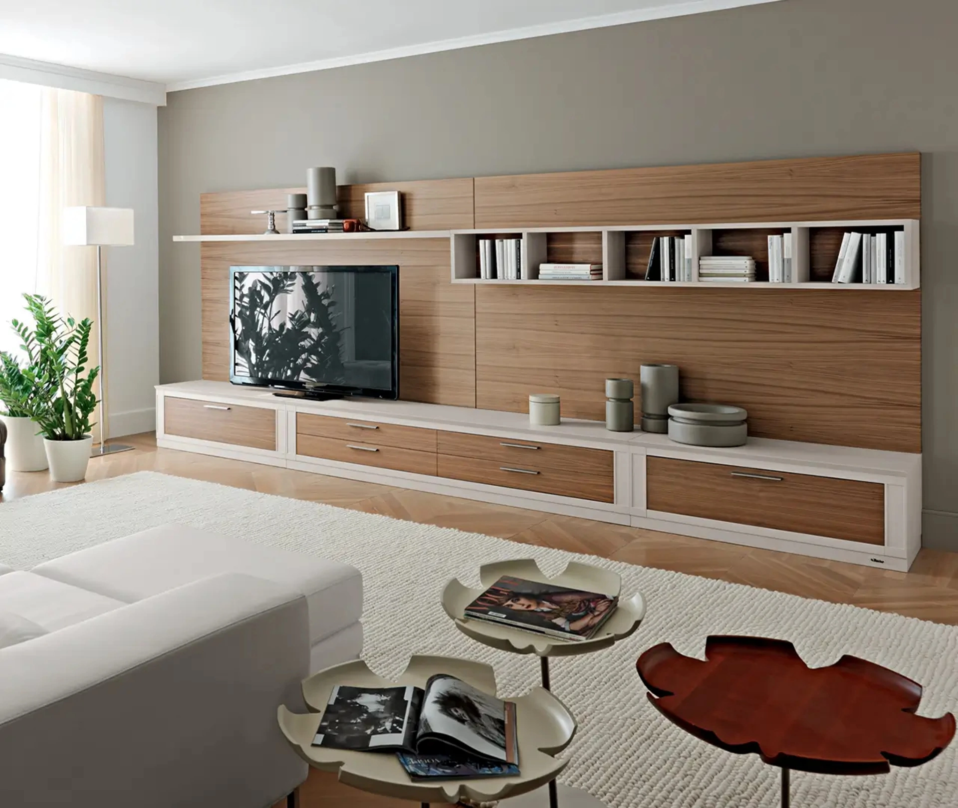 Quali sono i materiali e le finiture disponibili per la composizione Melograno 29?Le pareti attrezzate Le Fablier, come la composizione Melograno 29, spesso offrono finiture in legni pregiati o laccati. Presso Visone Casa S.r.l. puoi visionare i campioni nella materioteca per scegliere l'opzione perfetta per te.