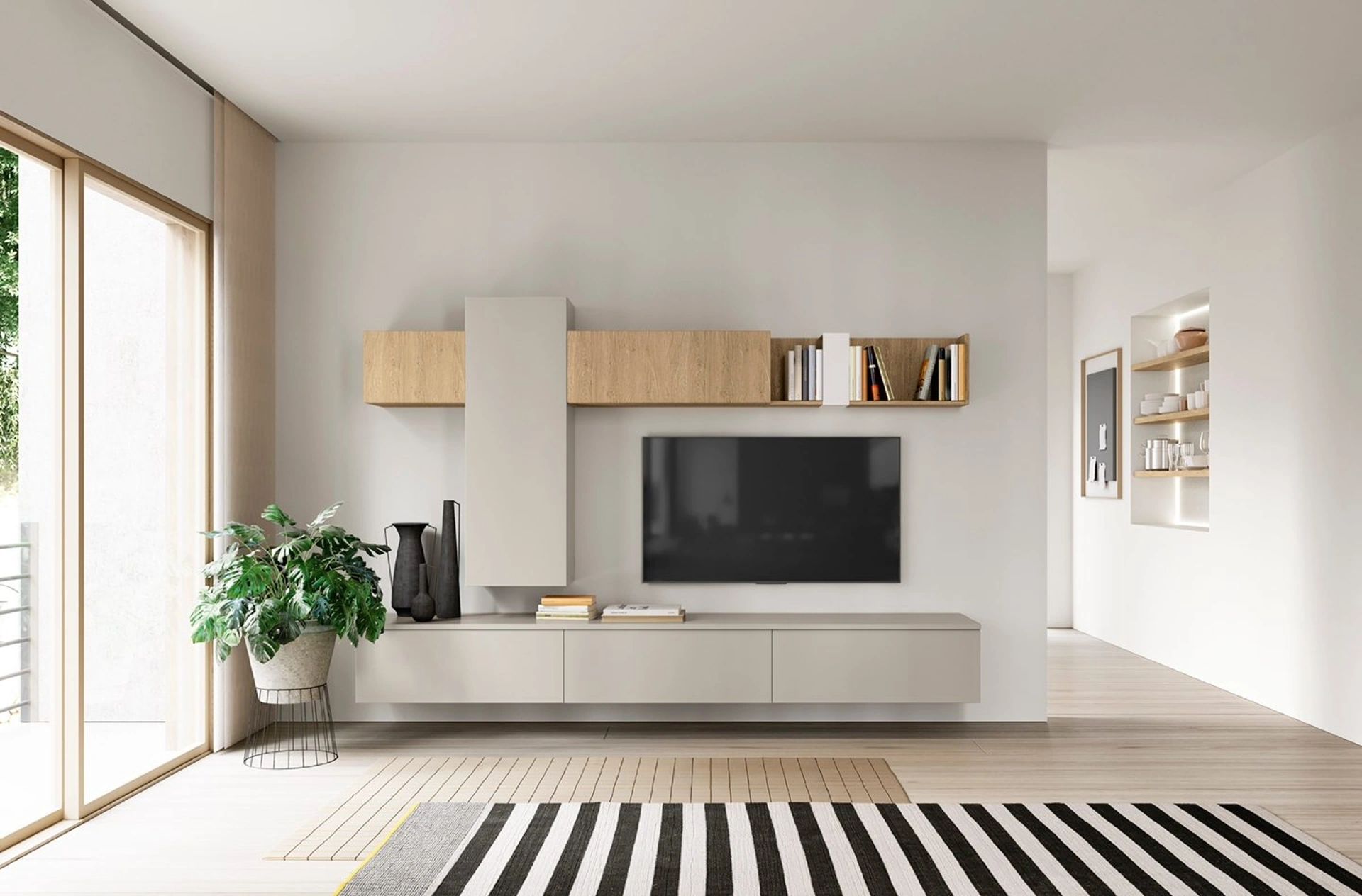 Posso personalizzare le dimensioni e la configurazione dei moduli della parete attrezzata Volo A003?Sì, la parete attrezzata Volo A003 è altamente modulare e personalizzabile. È possibile adattare le dimensioni standard e scegliere tra diverse composizioni per soddisfare ogni esigenza di spazio.