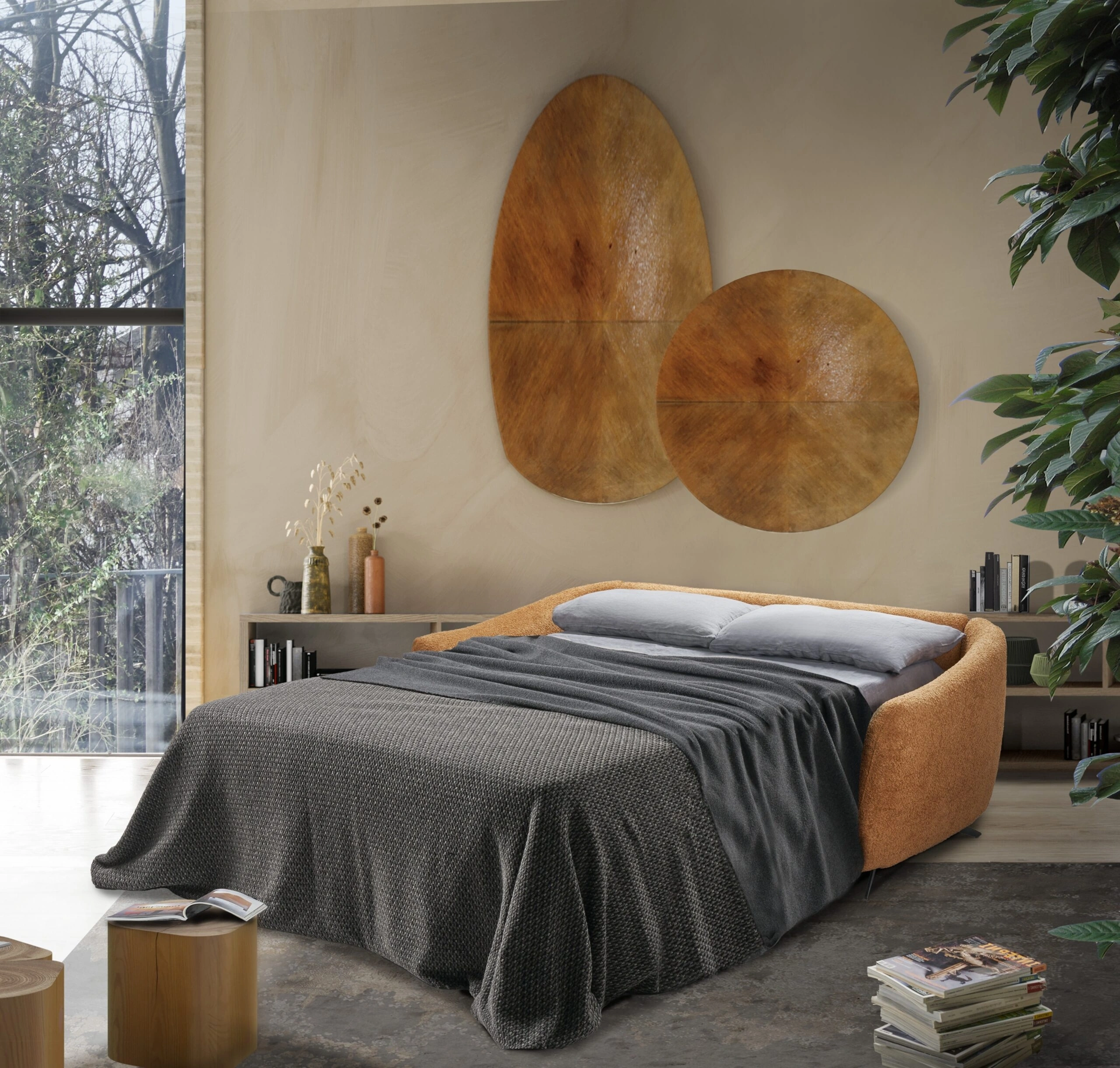 Se desideri divani e poltrone con letto come il modello nella fotografia, caratterizzato dai volumi che invitano a trascorrere i tuoi momenti di riposo. Il catalogo Il Benessere propone diverse idee per arredare gli interni all'insegna di praticità e valore estetico, mettendo al centro il tuo comfort. Divano Letto Cheri de Il Benessere: crea uno spazio familiare e confortevole in spazi moderni dall'estetica raffinata. I nostri Divani vengono progettati per essere abbinati a accessori di ogni genere, come tavolini, lampade e piantane o in combinazione con ulteriori divani in tessuto.
