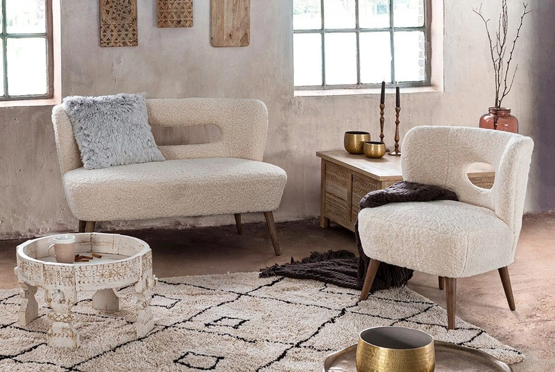 | Materiale: | Legno di pino, Rubberwood, Poliestere effetto lana, Schiuma poliuretanica |
