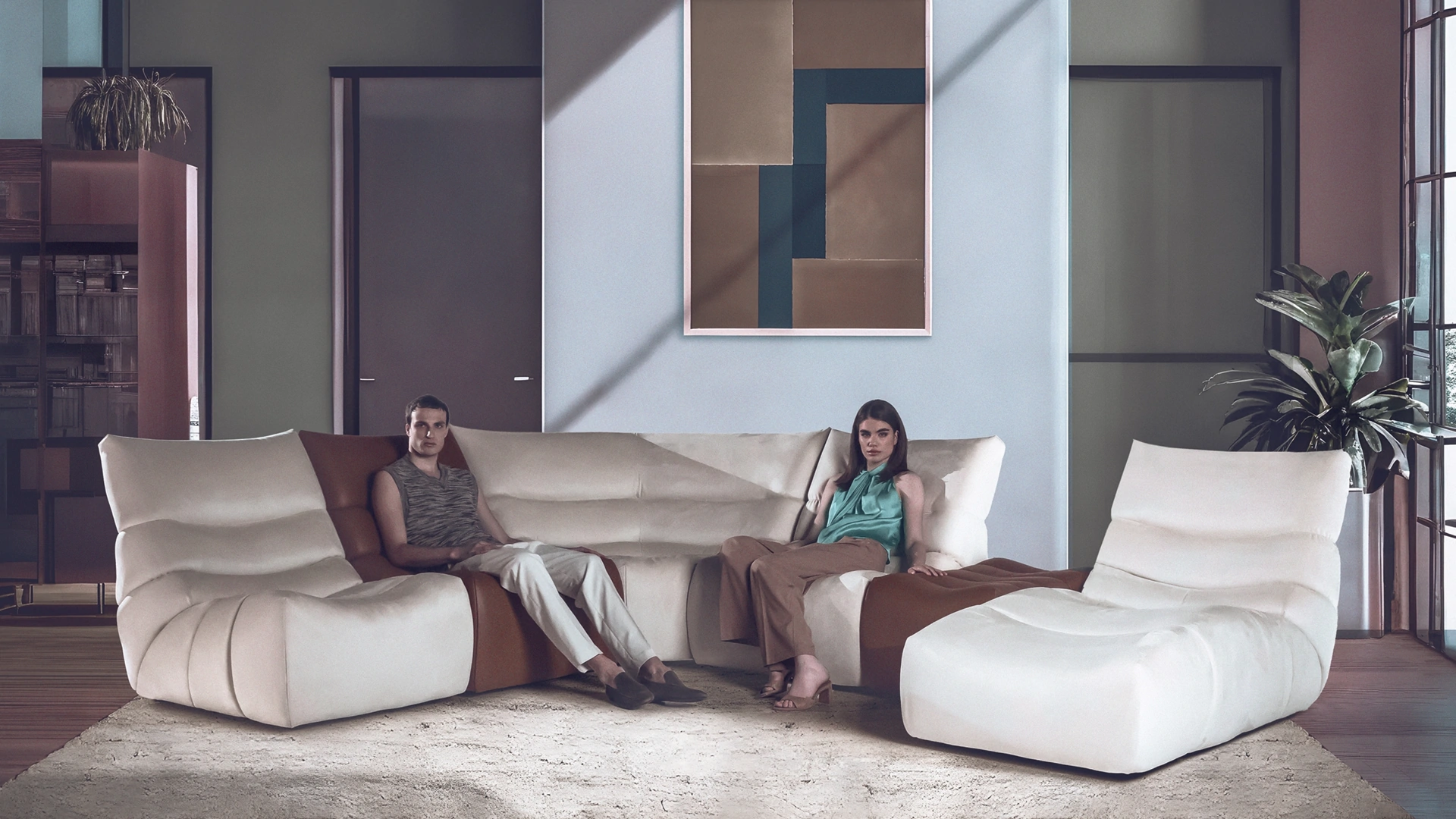 Venite a scoprire l'esclusivo divano modulare Trap di Calia Italia, disponibile ora presso il nostro showroom Visone Casa S.r.l. ad Alife. Questo modello si distingue per il suo stile contemporaneo, caratterizzato da volumi compatti e schienali alti e accoglienti, pensati per il massimo relax. Offerto in Pelle, Tessuto, Microfibra, presenta una raffinata lavorazione a fasce che avvolge la struttura, invitando al comfort. Il poggiatesta è dotato di un pratico meccanismo manuale interno, che consente di personalizzare l'inclinazione per una postura ideale.