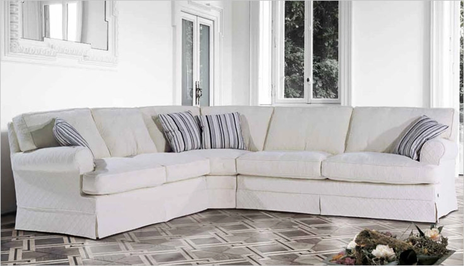 Il salotto è i protagonisti dell'ambiente giorno di ogni casa, gli imbottiti sono moduli d’arredo attorno a cui goderti momenti di relax e di socializzazione. Scopri una grande varietà di imbottiti ad angolo dei migliori brand e ottimizza la zona giorno che hai sempre desiderato. I Salotti costituiscono un'area del living veramente imprescindibile, da arredare attentamente posizionando divani, poltrone e pouf. TreCi Salotti, leader nella realizzazione di divani, ha realizzato per il modello nella fotografia un elegante e sofisticato rivestimento in tessuto.